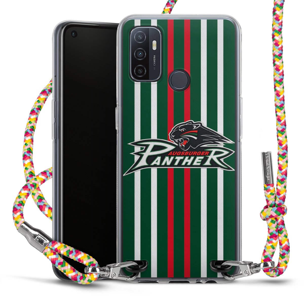 The flexible case is made from a highquality TPU material (thermoplastic Polyurethan). Thanks to its longlasting and break resistant characterisitcs, the case is flexible yet consistent in form and has a great grip and feel. The textile strap made from Polyester gives a chic yet casual accent allowing you to carry your phone like a bag or necklace - a practical gadget perfect for your next adventure. The textile strap is about 1.70 meters long and the length can easily be adjusted through the knots. Our Carry Case is available in Colourful, Mint-Camouflage, Very-Berry, Sahara-Sand and Sparkling-Neon. The ends of the textile strap are covered with metallic end caps to protect them against fraying.