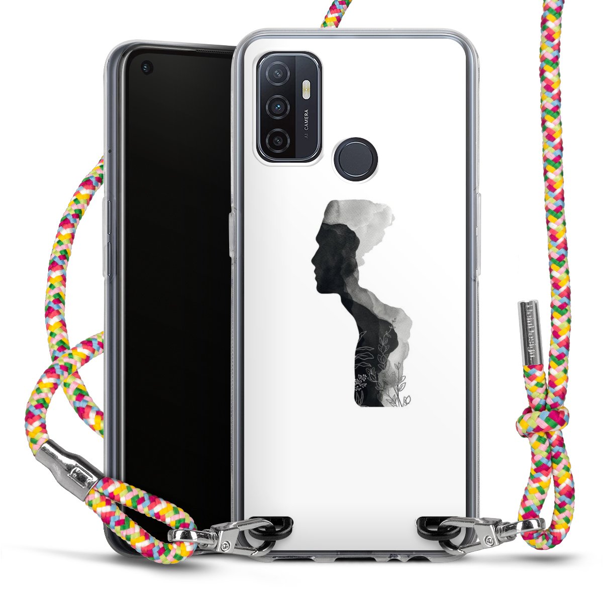 The flexible case is made from a highquality TPU material (thermoplastic Polyurethan). Thanks to its longlasting and break resistant characterisitcs, the case is flexible yet consistent in form and has a great grip and feel. The textile strap made from Polyester gives a chic yet casual accent allowing you to carry your phone like a bag or necklace - a practical gadget perfect for your next adventure. The textile strap is about 1.70 meters long and the length can easily be adjusted through the knots. Our Carry Case is available in Colourful, Mint-Camouflage, Very-Berry, Sahara-Sand and Sparkling-Neon. The ends of the textile strap are covered with metallic end caps to protect them against fraying.