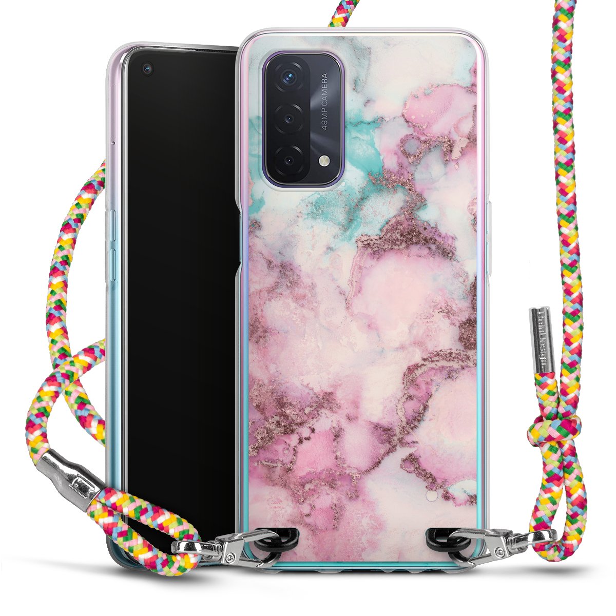The flexible case is made from a highquality TPU material (thermoplastic Polyurethan). Thanks to its longlasting and break resistant characterisitcs, the case is flexible yet consistent in form and has a great grip and feel. The textile strap made from Polyester gives a chic yet casual accent allowing you to carry your phone like a bag or necklace - a practical gadget perfect for your next adventure. The textile strap is about 1.70 meters long and the length can easily be adjusted through the knots. Our Carry Case is available in Colourful, Mint-Camouflage, Very-Berry, Sahara-Sand and Sparkling-Neon. The ends of the textile strap are covered with metallic end caps to protect them against fraying.