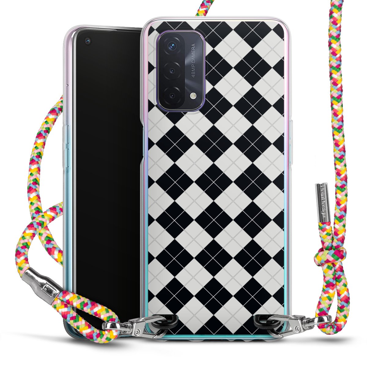 The flexible case is made from a highquality TPU material (thermoplastic Polyurethan). Thanks to its longlasting and break resistant characterisitcs, the case is flexible yet consistent in form and has a great grip and feel. The textile strap made from Polyester gives a chic yet casual accent allowing you to carry your phone like a bag or necklace - a practical gadget perfect for your next adventure. The textile strap is about 1.70 meters long and the length can easily be adjusted through the knots. Our Carry Case is available in Colourful, Mint-Camouflage, Very-Berry, Sahara-Sand and Sparkling-Neon. The ends of the textile strap are covered with metallic end caps to protect them against fraying.