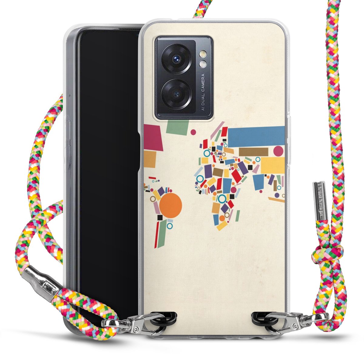 The flexible case is made from a highquality TPU material (thermoplastic Polyurethan). Thanks to its longlasting and break resistant characterisitcs, the case is flexible yet consistent in form and has a great grip and feel. The textile strap made from Polyester gives a chic yet casual accent allowing you to carry your phone like a bag or necklace - a practical gadget perfect for your next adventure. The textile strap is about 1.70 meters long and the length can easily be adjusted through the knots. Our Carry Case is available in Colourful, Mint-Camouflage, Very-Berry, Sahara-Sand and Sparkling-Neon. The ends of the textile strap are covered with metallic end caps to protect them against fraying.