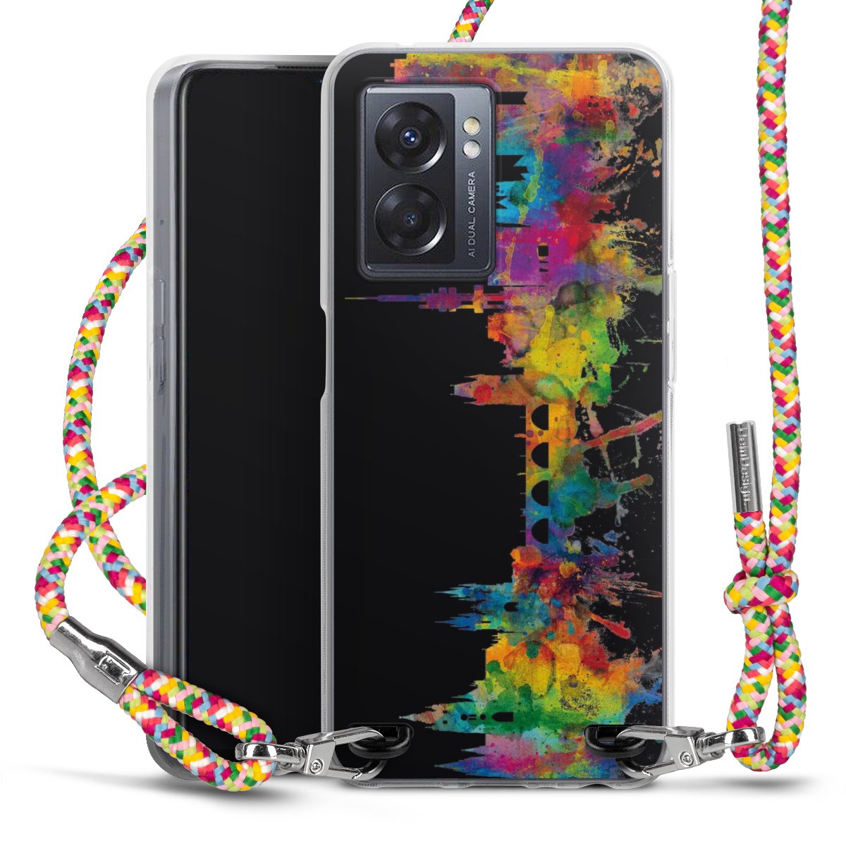 The flexible case is made from a highquality TPU material (thermoplastic Polyurethan). Thanks to its longlasting and break resistant characterisitcs, the case is flexible yet consistent in form and has a great grip and feel. The textile strap made from Polyester gives a chic yet casual accent allowing you to carry your phone like a bag or necklace - a practical gadget perfect for your next adventure. The textile strap is about 1.70 meters long and the length can easily be adjusted through the knots. Our Carry Case is available in Colourful, Mint-Camouflage, Very-Berry, Sahara-Sand and Sparkling-Neon. The ends of the textile strap are covered with metallic end caps to protect them against fraying.