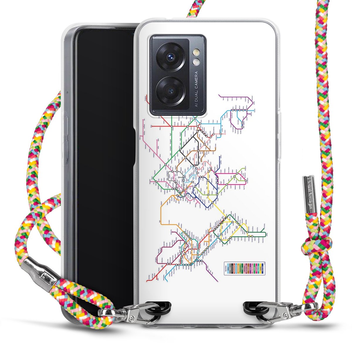 The flexible case is made from a highquality TPU material (thermoplastic Polyurethan). Thanks to its longlasting and break resistant characterisitcs, the case is flexible yet consistent in form and has a great grip and feel. The textile strap made from Polyester gives a chic yet casual accent allowing you to carry your phone like a bag or necklace - a practical gadget perfect for your next adventure. The textile strap is about 1.70 meters long and the length can easily be adjusted through the knots. Our Carry Case is available in Colourful, Mint-Camouflage, Very-Berry, Sahara-Sand and Sparkling-Neon. The ends of the textile strap are covered with metallic end caps to protect them against fraying.
