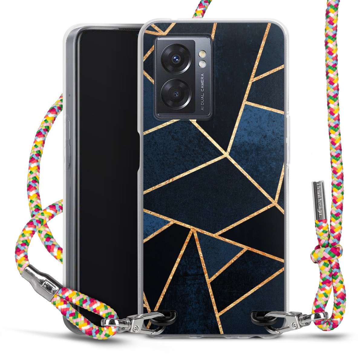 The flexible case is made from a highquality TPU material (thermoplastic Polyurethan). Thanks to its longlasting and break resistant characterisitcs, the case is flexible yet consistent in form and has a great grip and feel. The textile strap made from Polyester gives a chic yet casual accent allowing you to carry your phone like a bag or necklace - a practical gadget perfect for your next adventure. The textile strap is about 1.70 meters long and the length can easily be adjusted through the knots. Our Carry Case is available in Colourful, Mint-Camouflage, Very-Berry, Sahara-Sand and Sparkling-Neon. The ends of the textile strap are covered with metallic end caps to protect them against fraying.