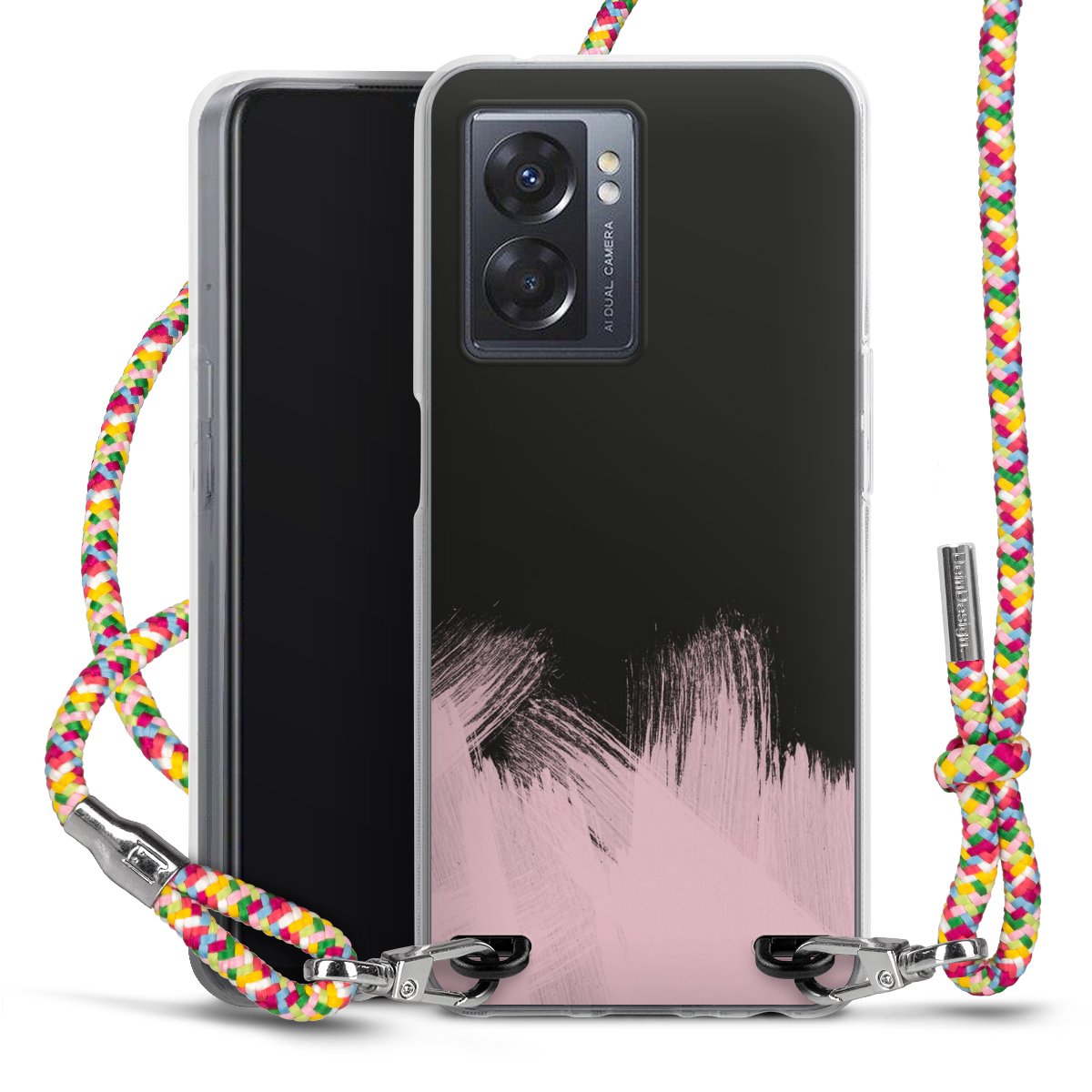 The flexible case is made from a highquality TPU material (thermoplastic Polyurethan). Thanks to its longlasting and break resistant characterisitcs, the case is flexible yet consistent in form and has a great grip and feel. The textile strap made from Polyester gives a chic yet casual accent allowing you to carry your phone like a bag or necklace - a practical gadget perfect for your next adventure. The textile strap is about 1.70 meters long and the length can easily be adjusted through the knots. Our Carry Case is available in Colourful, Mint-Camouflage, Very-Berry, Sahara-Sand and Sparkling-Neon. The ends of the textile strap are covered with metallic end caps to protect them against fraying.