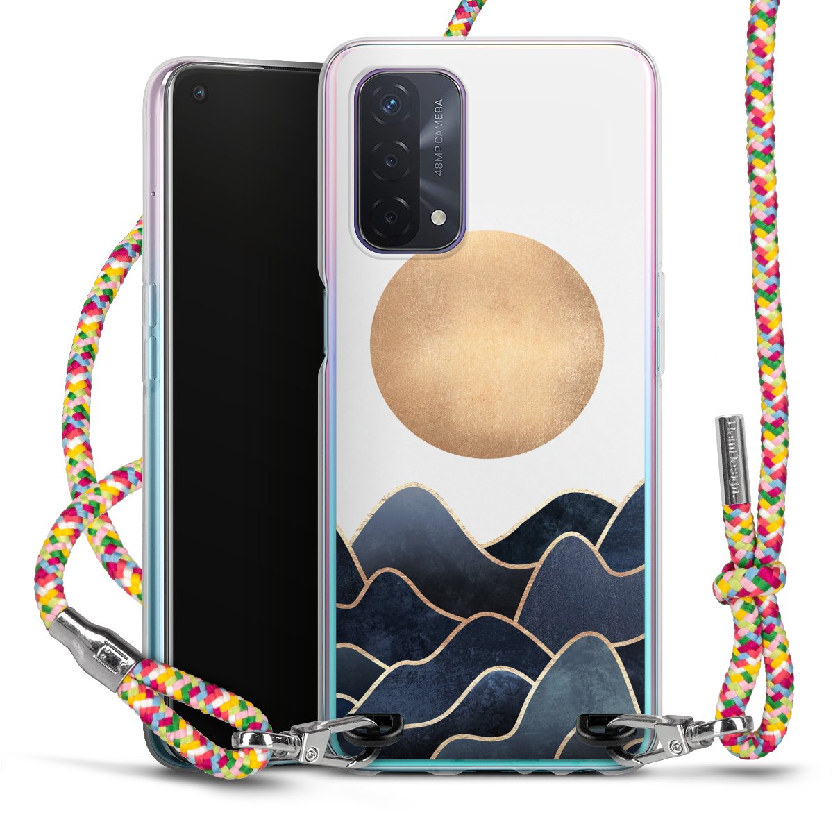 The flexible case is made from a highquality TPU material (thermoplastic Polyurethan). Thanks to its longlasting and break resistant characterisitcs, the case is flexible yet consistent in form and has a great grip and feel. The textile strap made from Polyester gives a chic yet casual accent allowing you to carry your phone like a bag or necklace - a practical gadget perfect for your next adventure. The textile strap is about 1.70 meters long and the length can easily be adjusted through the knots. Our Carry Case is available in Colourful, Mint-Camouflage, Very-Berry, Sahara-Sand and Sparkling-Neon. The ends of the textile strap are covered with metallic end caps to protect them against fraying.