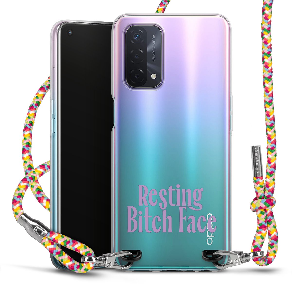 The flexible case is made from a highquality TPU material (thermoplastic Polyurethan). Thanks to its longlasting and break resistant characterisitcs, the case is flexible yet consistent in form and has a great grip and feel. The textile strap made from Polyester gives a chic yet casual accent allowing you to carry your phone like a bag or necklace - a practical gadget perfect for your next adventure. The textile strap is about 1.70 meters long and the length can easily be adjusted through the knots. Our Carry Case is available in Colourful, Mint-Camouflage, Very-Berry, Sahara-Sand and Sparkling-Neon. The ends of the textile strap are covered with metallic end caps to protect them against fraying.