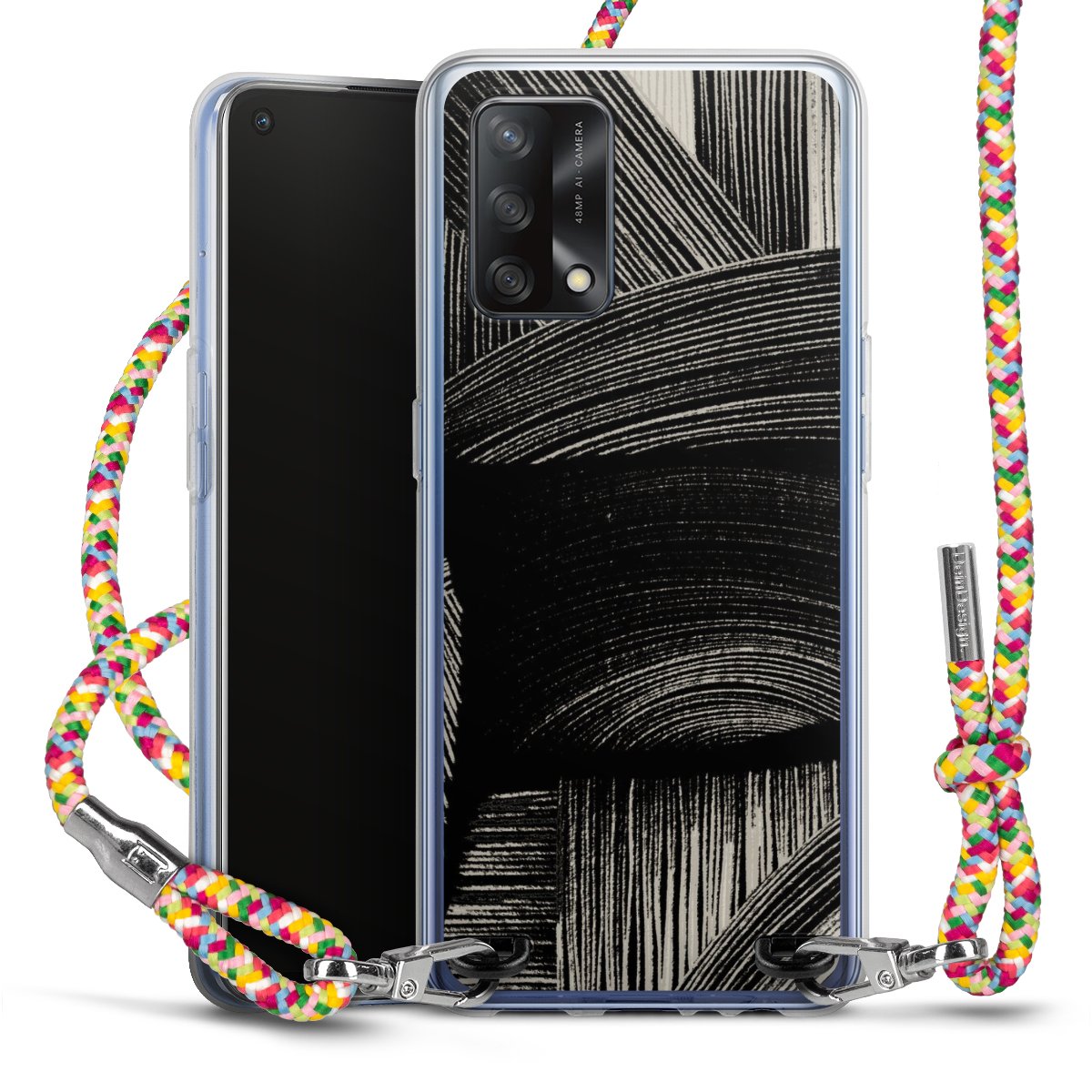The flexible case is made from a highquality TPU material (thermoplastic Polyurethan). Thanks to its longlasting and break resistant characterisitcs, the case is flexible yet consistent in form and has a great grip and feel. The textile strap made from Polyester gives a chic yet casual accent allowing you to carry your phone like a bag or necklace - a practical gadget perfect for your next adventure. The textile strap is about 1.70 meters long and the length can easily be adjusted through the knots. Our Carry Case is available in Colourful, Mint-Camouflage, Very-Berry, Sahara-Sand and Sparkling-Neon. The ends of the textile strap are covered with metallic end caps to protect them against fraying.