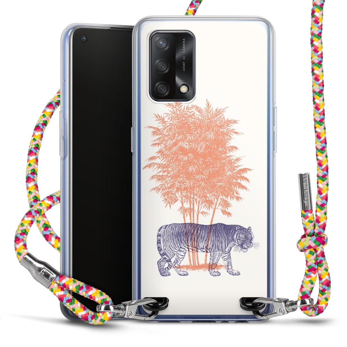 The flexible case is made from a highquality TPU material (thermoplastic Polyurethan). Thanks to its longlasting and break resistant characterisitcs, the case is flexible yet consistent in form and has a great grip and feel. The textile strap made from Polyester gives a chic yet casual accent allowing you to carry your phone like a bag or necklace - a practical gadget perfect for your next adventure. The textile strap is about 1.70 meters long and the length can easily be adjusted through the knots. Our Carry Case is available in Colourful, Mint-Camouflage, Very-Berry, Sahara-Sand and Sparkling-Neon. The ends of the textile strap are covered with metallic end caps to protect them against fraying.