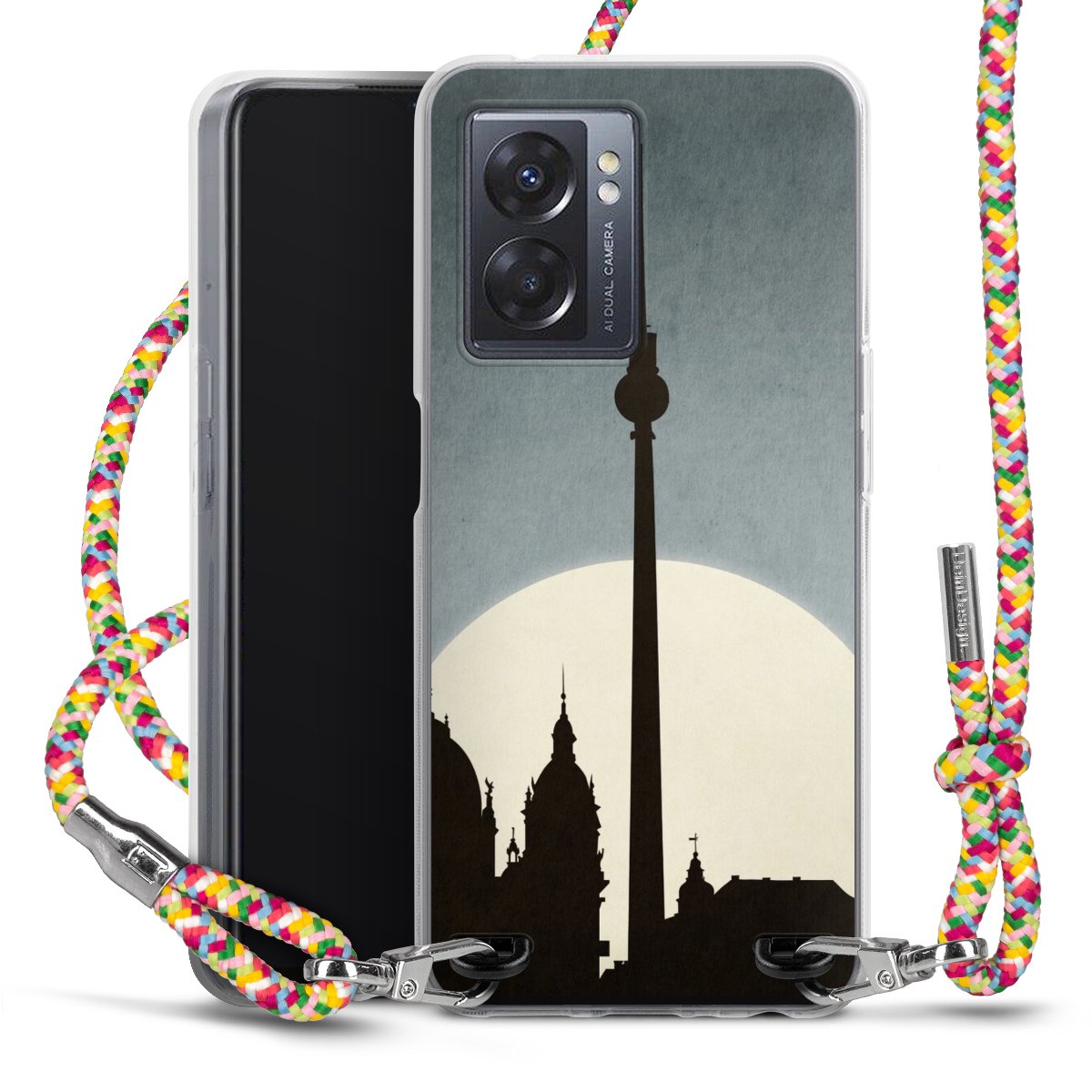 The flexible case is made from a highquality TPU material (thermoplastic Polyurethan). Thanks to its longlasting and break resistant characterisitcs, the case is flexible yet consistent in form and has a great grip and feel. The textile strap made from Polyester gives a chic yet casual accent allowing you to carry your phone like a bag or necklace - a practical gadget perfect for your next adventure. The textile strap is about 1.70 meters long and the length can easily be adjusted through the knots. Our Carry Case is available in Colourful, Mint-Camouflage, Very-Berry, Sahara-Sand and Sparkling-Neon. The ends of the textile strap are covered with metallic end caps to protect them against fraying.