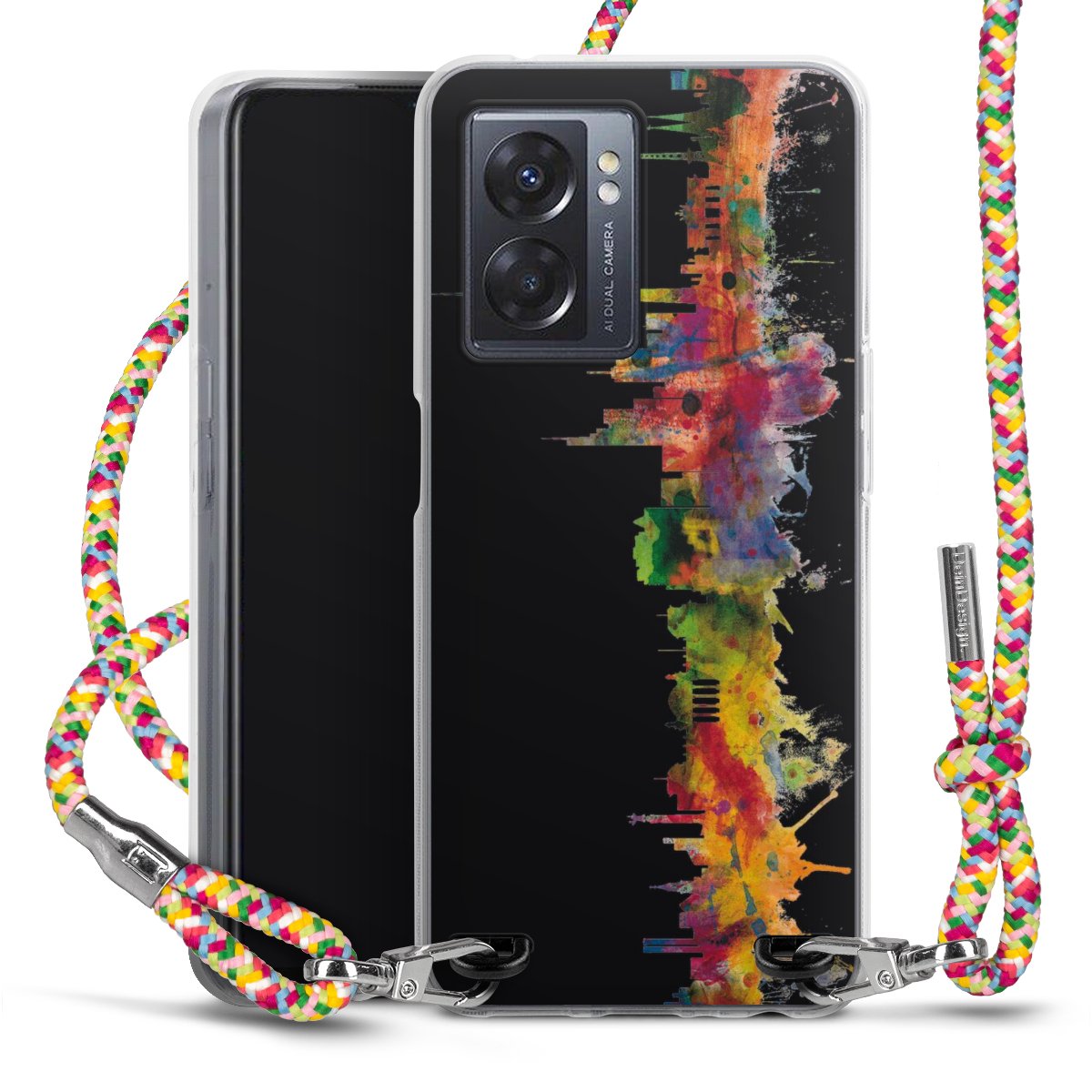 The flexible case is made from a highquality TPU material (thermoplastic Polyurethan). Thanks to its longlasting and break resistant characterisitcs, the case is flexible yet consistent in form and has a great grip and feel. The textile strap made from Polyester gives a chic yet casual accent allowing you to carry your phone like a bag or necklace - a practical gadget perfect for your next adventure. The textile strap is about 1.70 meters long and the length can easily be adjusted through the knots. Our Carry Case is available in Colourful, Mint-Camouflage, Very-Berry, Sahara-Sand and Sparkling-Neon. The ends of the textile strap are covered with metallic end caps to protect them against fraying.