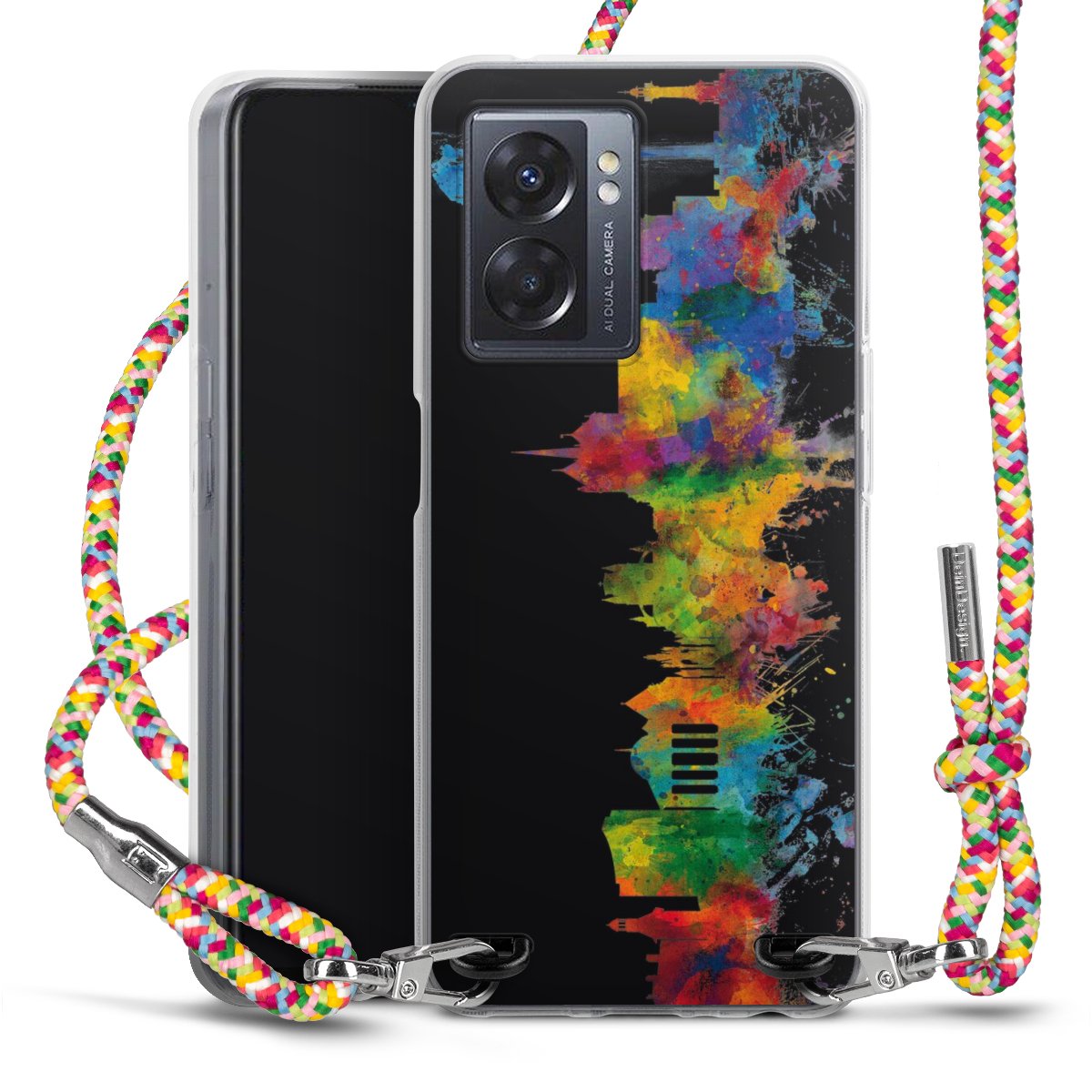 The flexible case is made from a highquality TPU material (thermoplastic Polyurethan). Thanks to its longlasting and break resistant characterisitcs, the case is flexible yet consistent in form and has a great grip and feel. The textile strap made from Polyester gives a chic yet casual accent allowing you to carry your phone like a bag or necklace - a practical gadget perfect for your next adventure. The textile strap is about 1.70 meters long and the length can easily be adjusted through the knots. Our Carry Case is available in Colourful, Mint-Camouflage, Very-Berry, Sahara-Sand and Sparkling-Neon. The ends of the textile strap are covered with metallic end caps to protect them against fraying.