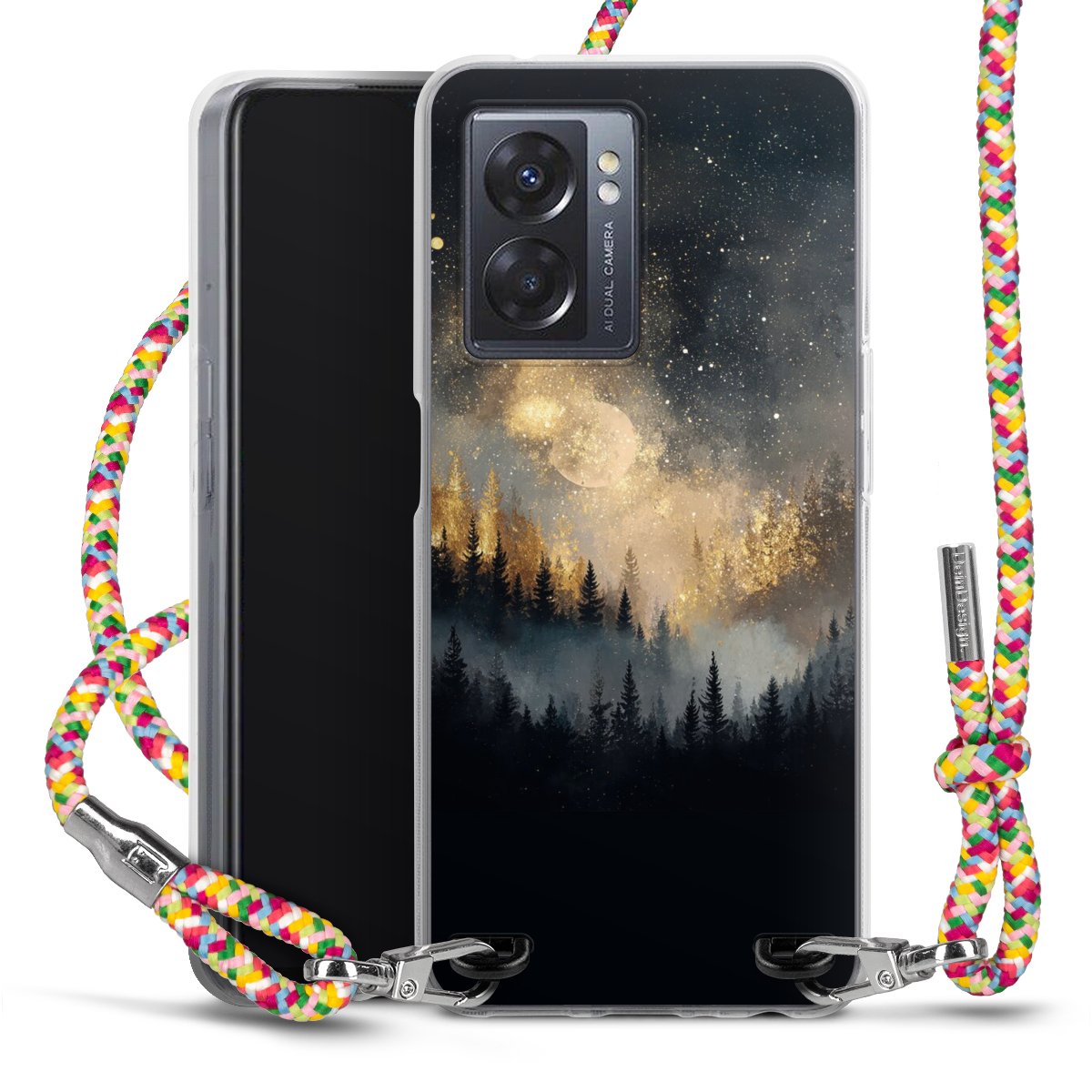 The flexible case is made from a highquality TPU material (thermoplastic Polyurethan). Thanks to its longlasting and break resistant characterisitcs, the case is flexible yet consistent in form and has a great grip and feel. The textile strap made from Polyester gives a chic yet casual accent allowing you to carry your phone like a bag or necklace - a practical gadget perfect for your next adventure. The textile strap is about 1.70 meters long and the length can easily be adjusted through the knots. Our Carry Case is available in Colourful, Mint-Camouflage, Very-Berry, Sahara-Sand and Sparkling-Neon. The ends of the textile strap are covered with metallic end caps to protect them against fraying.