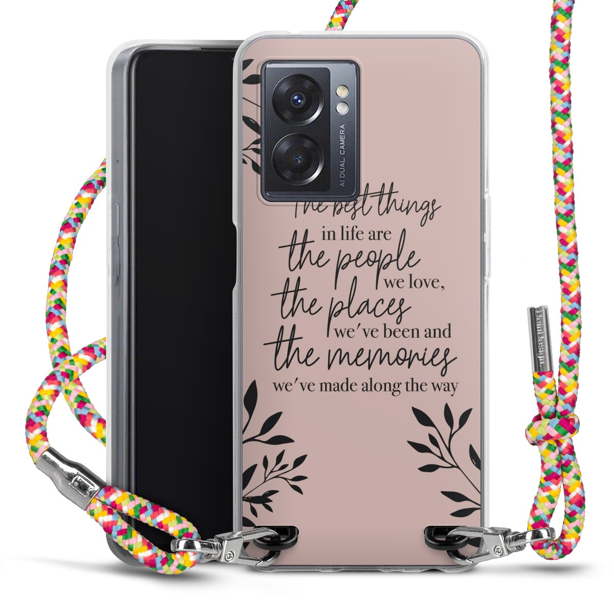 The flexible case is made from a highquality TPU material (thermoplastic Polyurethan). Thanks to its longlasting and break resistant characterisitcs, the case is flexible yet consistent in form and has a great grip and feel. The textile strap made from Polyester gives a chic yet casual accent allowing you to carry your phone like a bag or necklace - a practical gadget perfect for your next adventure. The textile strap is about 1.70 meters long and the length can easily be adjusted through the knots. Our Carry Case is available in Colourful, Mint-Camouflage, Very-Berry, Sahara-Sand and Sparkling-Neon. The ends of the textile strap are covered with metallic end caps to protect them against fraying.