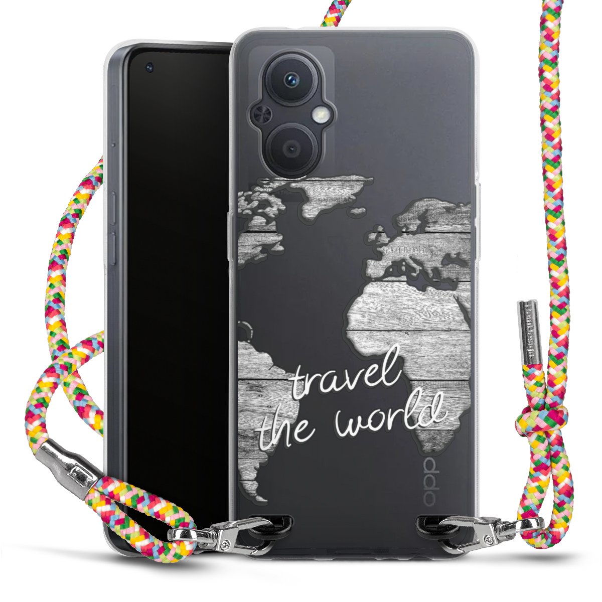 The flexible case is made from a highquality TPU material (thermoplastic Polyurethan). Thanks to its longlasting and break resistant characterisitcs, the case is flexible yet consistent in form and has a great grip and feel. The textile strap made from Polyester gives a chic yet casual accent allowing you to carry your phone like a bag or necklace - a practical gadget perfect for your next adventure. The textile strap is about 1.70 meters long and the length can easily be adjusted through the knots. Our Carry Case is available in Colourful, Mint-Camouflage, Very-Berry, Sahara-Sand and Sparkling-Neon. The ends of the textile strap are covered with metallic end caps to protect them against fraying.