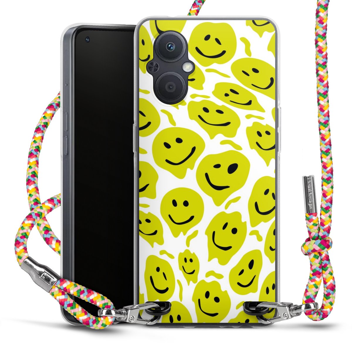 The flexible case is made from a highquality TPU material (thermoplastic Polyurethan). Thanks to its longlasting and break resistant characterisitcs, the case is flexible yet consistent in form and has a great grip and feel. The textile strap made from Polyester gives a chic yet casual accent allowing you to carry your phone like a bag or necklace - a practical gadget perfect for your next adventure. The textile strap is about 1.70 meters long and the length can easily be adjusted through the knots. Our Carry Case is available in Colourful, Mint-Camouflage, Very-Berry, Sahara-Sand and Sparkling-Neon. The ends of the textile strap are covered with metallic end caps to protect them against fraying.