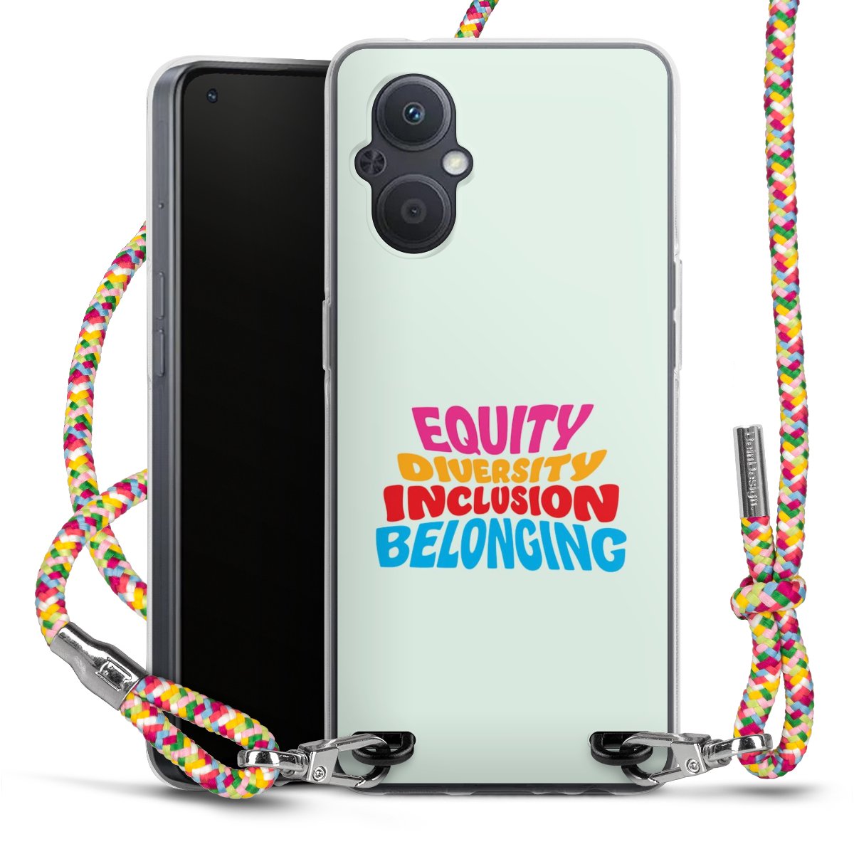 The flexible case is made from a highquality TPU material (thermoplastic Polyurethan). Thanks to its longlasting and break resistant characterisitcs, the case is flexible yet consistent in form and has a great grip and feel. The textile strap made from Polyester gives a chic yet casual accent allowing you to carry your phone like a bag or necklace - a practical gadget perfect for your next adventure. The textile strap is about 1.70 meters long and the length can easily be adjusted through the knots. Our Carry Case is available in Colourful, Mint-Camouflage, Very-Berry, Sahara-Sand and Sparkling-Neon. The ends of the textile strap are covered with metallic end caps to protect them against fraying.