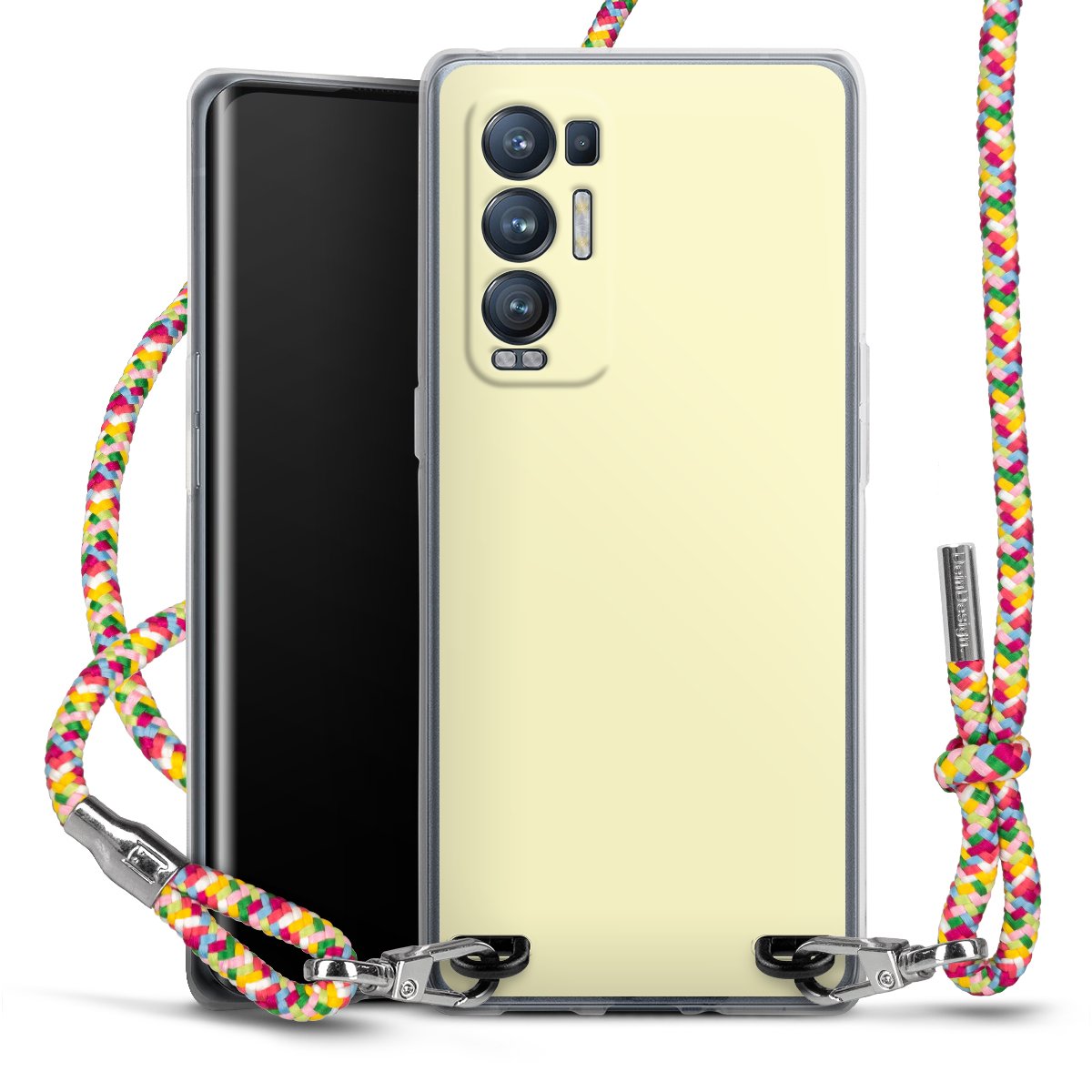 The flexible case is made from a highquality TPU material (thermoplastic Polyurethan). Thanks to its longlasting and break resistant characterisitcs, the case is flexible yet consistent in form and has a great grip and feel. The textile strap made from Polyester gives a chic yet casual accent allowing you to carry your phone like a bag or necklace - a practical gadget perfect for your next adventure. The textile strap is about 1.70 meters long and the length can easily be adjusted through the knots. Our Carry Case is available in Colourful, Mint-Camouflage, Very-Berry, Sahara-Sand and Sparkling-Neon. The ends of the textile strap are covered with metallic end caps to protect them against fraying.