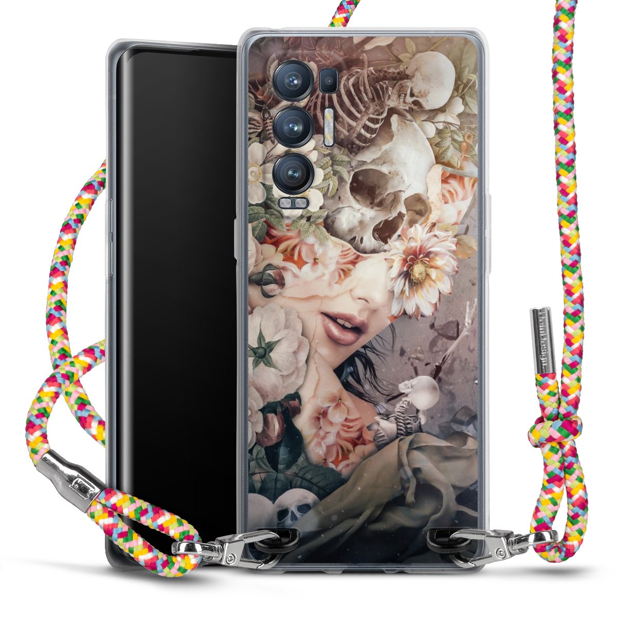 The flexible case is made from a highquality TPU material (thermoplastic Polyurethan). Thanks to its longlasting and break resistant characterisitcs, the case is flexible yet consistent in form and has a great grip and feel. The textile strap made from Polyester gives a chic yet casual accent allowing you to carry your phone like a bag or necklace - a practical gadget perfect for your next adventure. The textile strap is about 1.70 meters long and the length can easily be adjusted through the knots. Our Carry Case is available in Colourful, Mint-Camouflage, Very-Berry, Sahara-Sand and Sparkling-Neon. The ends of the textile strap are covered with metallic end caps to protect them against fraying.