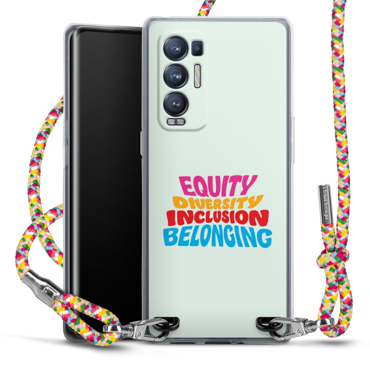 The flexible case is made from a highquality TPU material (thermoplastic Polyurethan). Thanks to its longlasting and break resistant characterisitcs, the case is flexible yet consistent in form and has a great grip and feel. The textile strap made from Polyester gives a chic yet casual accent allowing you to carry your phone like a bag or necklace - a practical gadget perfect for your next adventure. The textile strap is about 1.70 meters long and the length can easily be adjusted through the knots. Our Carry Case is available in Colourful, Mint-Camouflage, Very-Berry, Sahara-Sand and Sparkling-Neon. The ends of the textile strap are covered with metallic end caps to protect them against fraying.