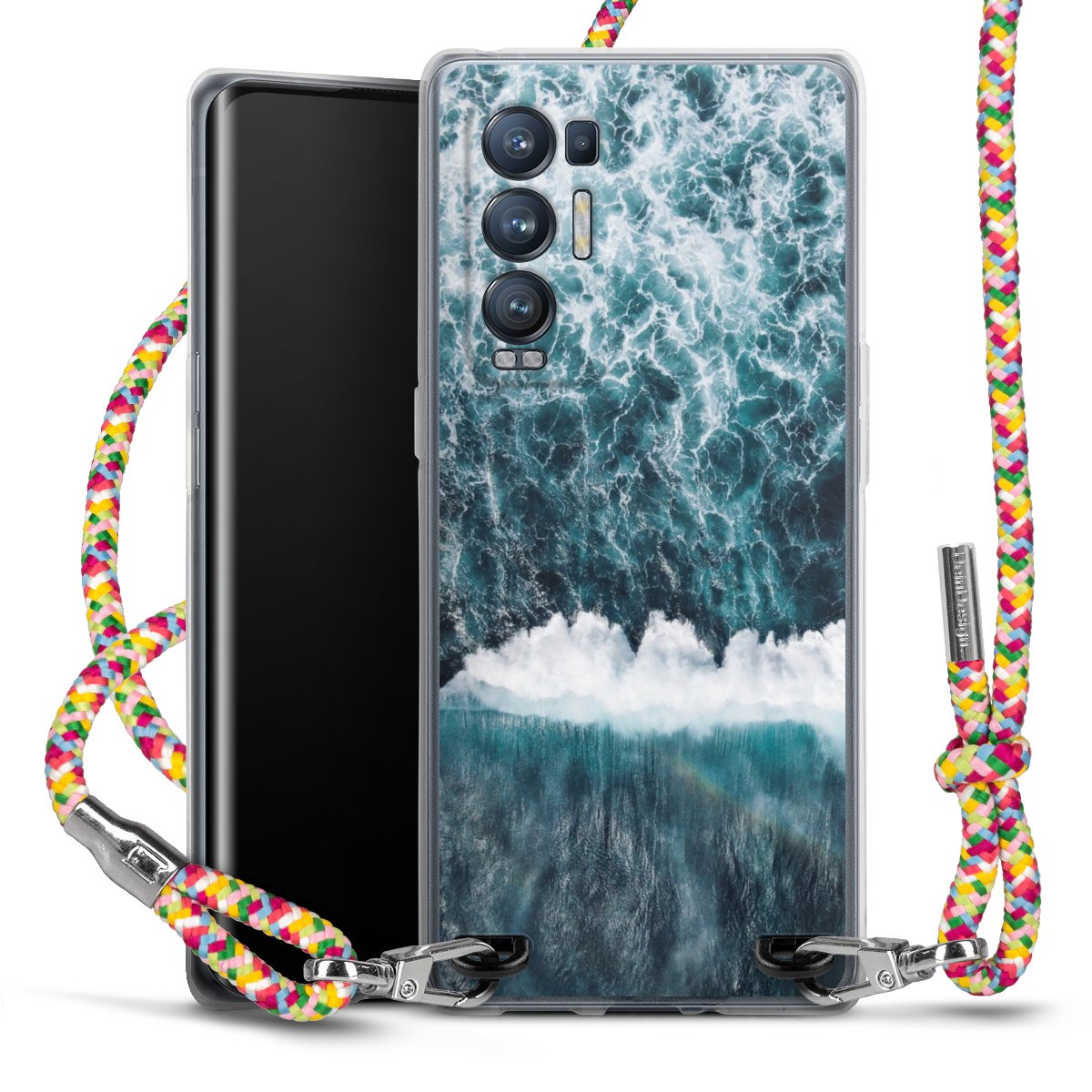 The flexible case is made from a highquality TPU material (thermoplastic Polyurethan). Thanks to its longlasting and break resistant characterisitcs, the case is flexible yet consistent in form and has a great grip and feel. The textile strap made from Polyester gives a chic yet casual accent allowing you to carry your phone like a bag or necklace - a practical gadget perfect for your next adventure. The textile strap is about 1.70 meters long and the length can easily be adjusted through the knots. Our Carry Case is available in Colourful, Mint-Camouflage, Very-Berry, Sahara-Sand and Sparkling-Neon. The ends of the textile strap are covered with metallic end caps to protect them against fraying.