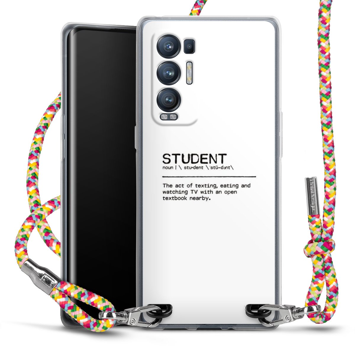 The flexible case is made from a highquality TPU material (thermoplastic Polyurethan). Thanks to its longlasting and break resistant characterisitcs, the case is flexible yet consistent in form and has a great grip and feel. The textile strap made from Polyester gives a chic yet casual accent allowing you to carry your phone like a bag or necklace - a practical gadget perfect for your next adventure. The textile strap is about 1.70 meters long and the length can easily be adjusted through the knots. Our Carry Case is available in Colourful, Mint-Camouflage, Very-Berry, Sahara-Sand and Sparkling-Neon. The ends of the textile strap are covered with metallic end caps to protect them against fraying.