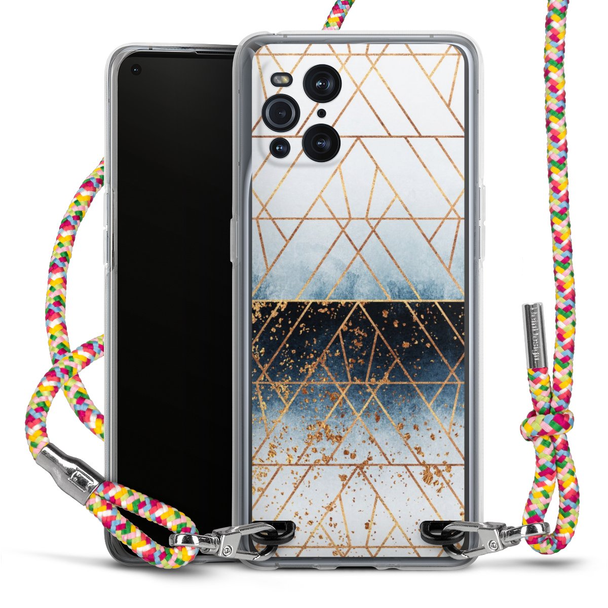 The flexible case is made from a highquality TPU material (thermoplastic Polyurethan). Thanks to its longlasting and break resistant characterisitcs, the case is flexible yet consistent in form and has a great grip and feel. The textile strap made from Polyester gives a chic yet casual accent allowing you to carry your phone like a bag or necklace - a practical gadget perfect for your next adventure. The textile strap is about 1.70 meters long and the length can easily be adjusted through the knots. Our Carry Case is available in Colourful, Mint-Camouflage, Very-Berry, Sahara-Sand and Sparkling-Neon. The ends of the textile strap are covered with metallic end caps to protect them against fraying.