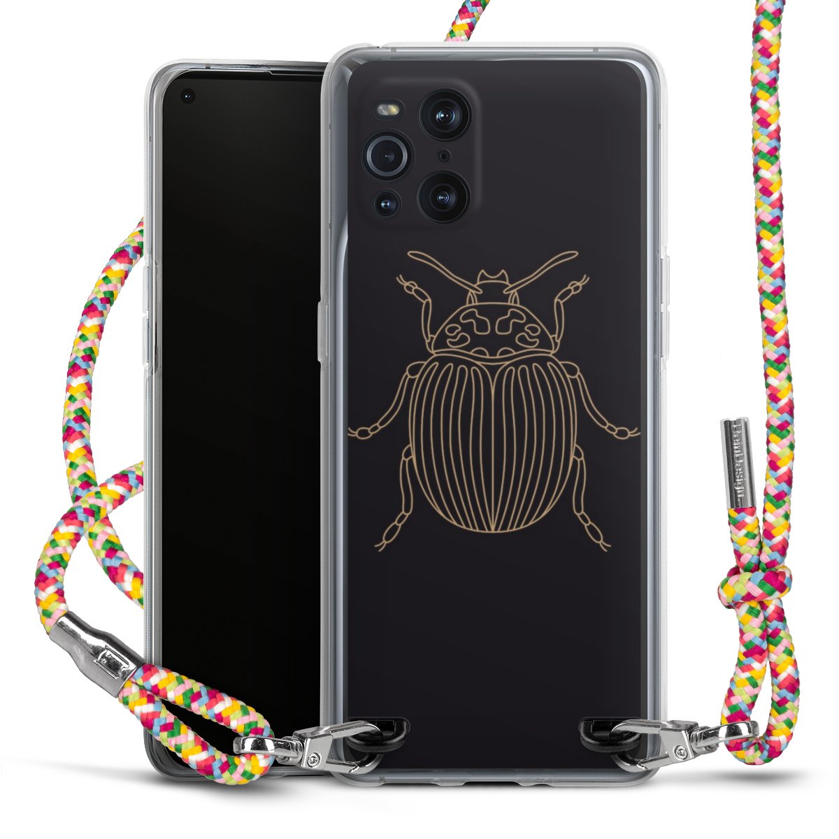 The flexible case is made from a highquality TPU material (thermoplastic Polyurethan). Thanks to its longlasting and break resistant characterisitcs, the case is flexible yet consistent in form and has a great grip and feel. The textile strap made from Polyester gives a chic yet casual accent allowing you to carry your phone like a bag or necklace - a practical gadget perfect for your next adventure. The textile strap is about 1.70 meters long and the length can easily be adjusted through the knots. Our Carry Case is available in Colourful, Mint-Camouflage, Very-Berry, Sahara-Sand and Sparkling-Neon. The ends of the textile strap are covered with metallic end caps to protect them against fraying.