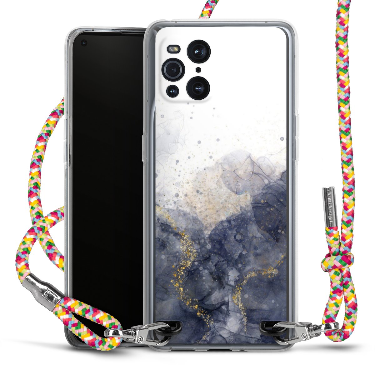 The flexible case is made from a highquality TPU material (thermoplastic Polyurethan). Thanks to its longlasting and break resistant characterisitcs, the case is flexible yet consistent in form and has a great grip and feel. The textile strap made from Polyester gives a chic yet casual accent allowing you to carry your phone like a bag or necklace - a practical gadget perfect for your next adventure. The textile strap is about 1.70 meters long and the length can easily be adjusted through the knots. Our Carry Case is available in Colourful, Mint-Camouflage, Very-Berry, Sahara-Sand and Sparkling-Neon. The ends of the textile strap are covered with metallic end caps to protect them against fraying.