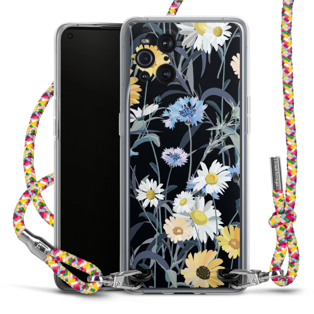 The flexible case is made from a highquality TPU material (thermoplastic Polyurethan). Thanks to its longlasting and break resistant characterisitcs, the case is flexible yet consistent in form and has a great grip and feel. The textile strap made from Polyester gives a chic yet casual accent allowing you to carry your phone like a bag or necklace - a practical gadget perfect for your next adventure. The textile strap is about 1.70 meters long and the length can easily be adjusted through the knots. Our Carry Case is available in Colourful, Mint-Camouflage, Very-Berry, Sahara-Sand and Sparkling-Neon. The ends of the textile strap are covered with metallic end caps to protect them against fraying.
