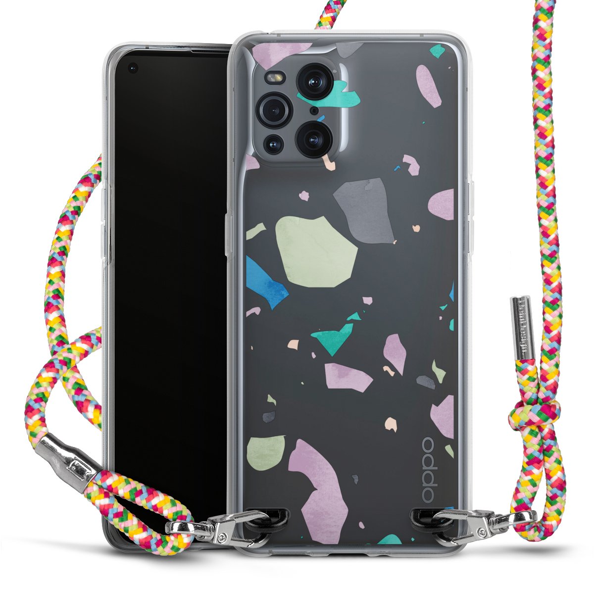 The flexible case is made from a highquality TPU material (thermoplastic Polyurethan). Thanks to its longlasting and break resistant characterisitcs, the case is flexible yet consistent in form and has a great grip and feel. The textile strap made from Polyester gives a chic yet casual accent allowing you to carry your phone like a bag or necklace - a practical gadget perfect for your next adventure. The textile strap is about 1.70 meters long and the length can easily be adjusted through the knots. Our Carry Case is available in Colourful, Mint-Camouflage, Very-Berry, Sahara-Sand and Sparkling-Neon. The ends of the textile strap are covered with metallic end caps to protect them against fraying.