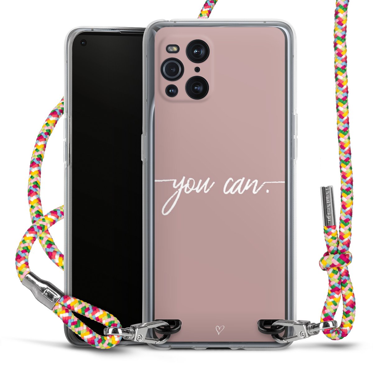 The flexible case is made from a highquality TPU material (thermoplastic Polyurethan). Thanks to its longlasting and break resistant characterisitcs, the case is flexible yet consistent in form and has a great grip and feel. The textile strap made from Polyester gives a chic yet casual accent allowing you to carry your phone like a bag or necklace - a practical gadget perfect for your next adventure. The textile strap is about 1.70 meters long and the length can easily be adjusted through the knots. Our Carry Case is available in Colourful, Mint-Camouflage, Very-Berry, Sahara-Sand and Sparkling-Neon. The ends of the textile strap are covered with metallic end caps to protect them against fraying.