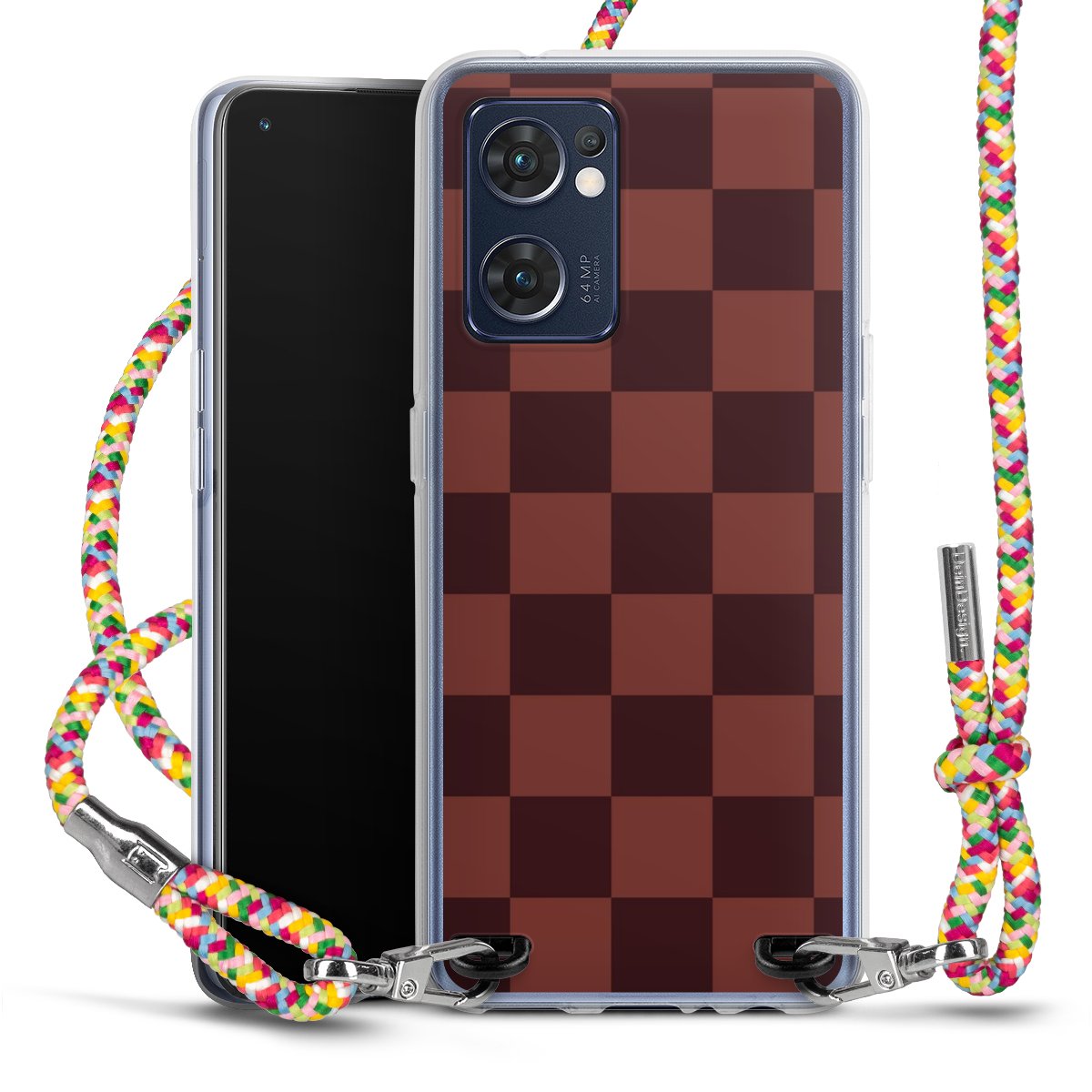 The flexible case is made from a highquality TPU material (thermoplastic Polyurethan). Thanks to its longlasting and break resistant characterisitcs, the case is flexible yet consistent in form and has a great grip and feel. The textile strap made from Polyester gives a chic yet casual accent allowing you to carry your phone like a bag or necklace - a practical gadget perfect for your next adventure. The textile strap is about 1.70 meters long and the length can easily be adjusted through the knots. Our Carry Case is available in Colourful, Mint-Camouflage, Very-Berry, Sahara-Sand and Sparkling-Neon. The ends of the textile strap are covered with metallic end caps to protect them against fraying.