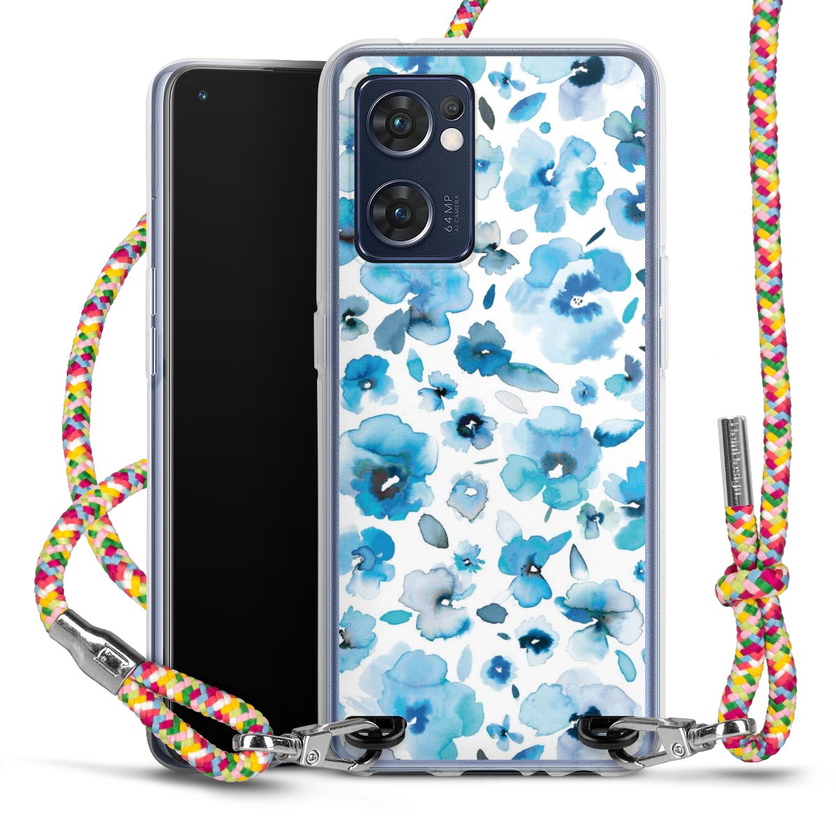 The flexible case is made from a highquality TPU material (thermoplastic Polyurethan). Thanks to its longlasting and break resistant characterisitcs, the case is flexible yet consistent in form and has a great grip and feel. The textile strap made from Polyester gives a chic yet casual accent allowing you to carry your phone like a bag or necklace - a practical gadget perfect for your next adventure. The textile strap is about 1.70 meters long and the length can easily be adjusted through the knots. Our Carry Case is available in Colourful, Mint-Camouflage, Very-Berry, Sahara-Sand and Sparkling-Neon. The ends of the textile strap are covered with metallic end caps to protect them against fraying.