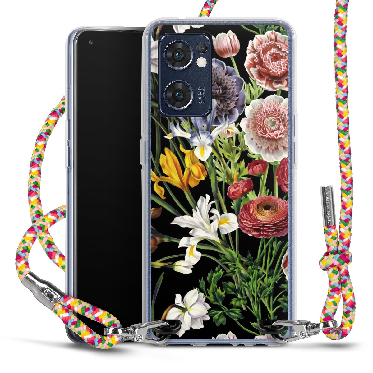 The flexible case is made from a highquality TPU material (thermoplastic Polyurethan). Thanks to its longlasting and break resistant characterisitcs, the case is flexible yet consistent in form and has a great grip and feel. The textile strap made from Polyester gives a chic yet casual accent allowing you to carry your phone like a bag or necklace - a practical gadget perfect for your next adventure. The textile strap is about 1.70 meters long and the length can easily be adjusted through the knots. Our Carry Case is available in Colourful, Mint-Camouflage, Very-Berry, Sahara-Sand and Sparkling-Neon. The ends of the textile strap are covered with metallic end caps to protect them against fraying.