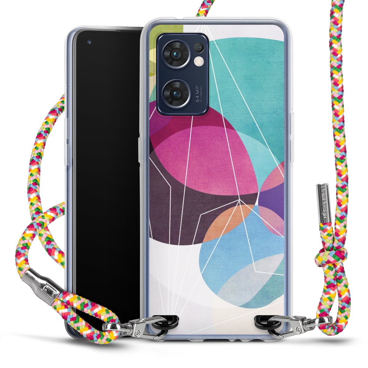 The flexible case is made from a highquality TPU material (thermoplastic Polyurethan). Thanks to its longlasting and break resistant characterisitcs, the case is flexible yet consistent in form and has a great grip and feel. The textile strap made from Polyester gives a chic yet casual accent allowing you to carry your phone like a bag or necklace - a practical gadget perfect for your next adventure. The textile strap is about 1.70 meters long and the length can easily be adjusted through the knots. Our Carry Case is available in Colourful, Mint-Camouflage, Very-Berry, Sahara-Sand and Sparkling-Neon. The ends of the textile strap are covered with metallic end caps to protect them against fraying.