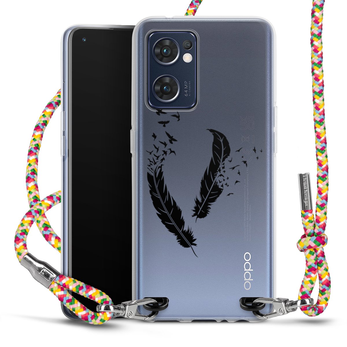 The flexible case is made from a highquality TPU material (thermoplastic Polyurethan). Thanks to its longlasting and break resistant characterisitcs, the case is flexible yet consistent in form and has a great grip and feel. The textile strap made from Polyester gives a chic yet casual accent allowing you to carry your phone like a bag or necklace - a practical gadget perfect for your next adventure. The textile strap is about 1.70 meters long and the length can easily be adjusted through the knots. Our Carry Case is available in Colourful, Mint-Camouflage, Very-Berry, Sahara-Sand and Sparkling-Neon. The ends of the textile strap are covered with metallic end caps to protect them against fraying.
