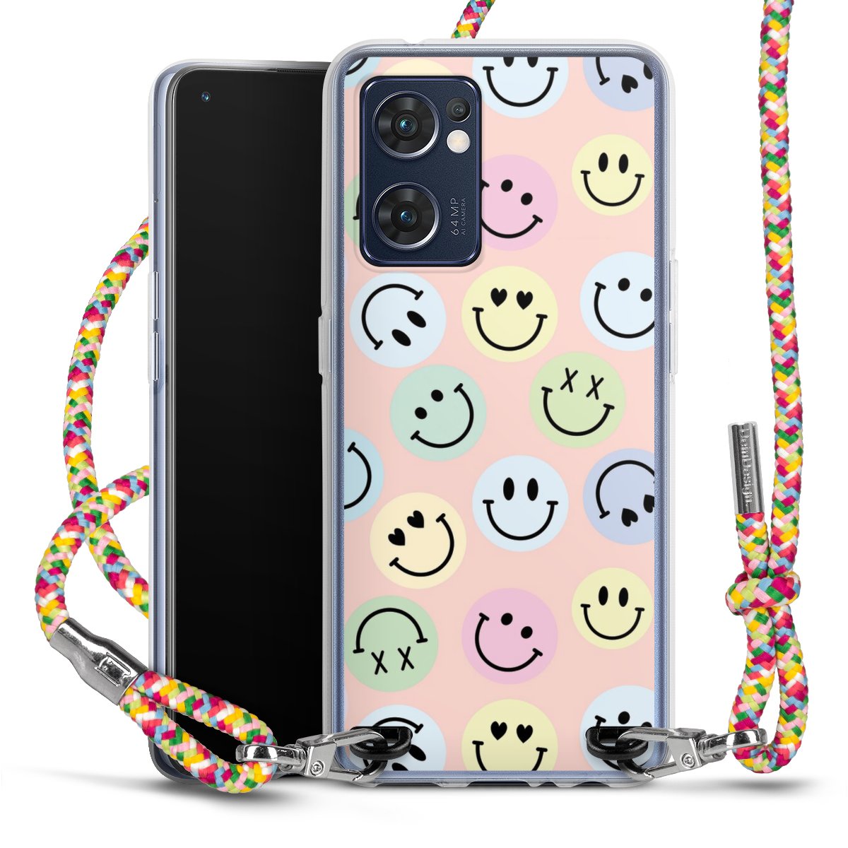 The flexible case is made from a highquality TPU material (thermoplastic Polyurethan). Thanks to its longlasting and break resistant characterisitcs, the case is flexible yet consistent in form and has a great grip and feel. The textile strap made from Polyester gives a chic yet casual accent allowing you to carry your phone like a bag or necklace - a practical gadget perfect for your next adventure. The textile strap is about 1.70 meters long and the length can easily be adjusted through the knots. Our Carry Case is available in Colourful, Mint-Camouflage, Very-Berry, Sahara-Sand and Sparkling-Neon. The ends of the textile strap are covered with metallic end caps to protect them against fraying.