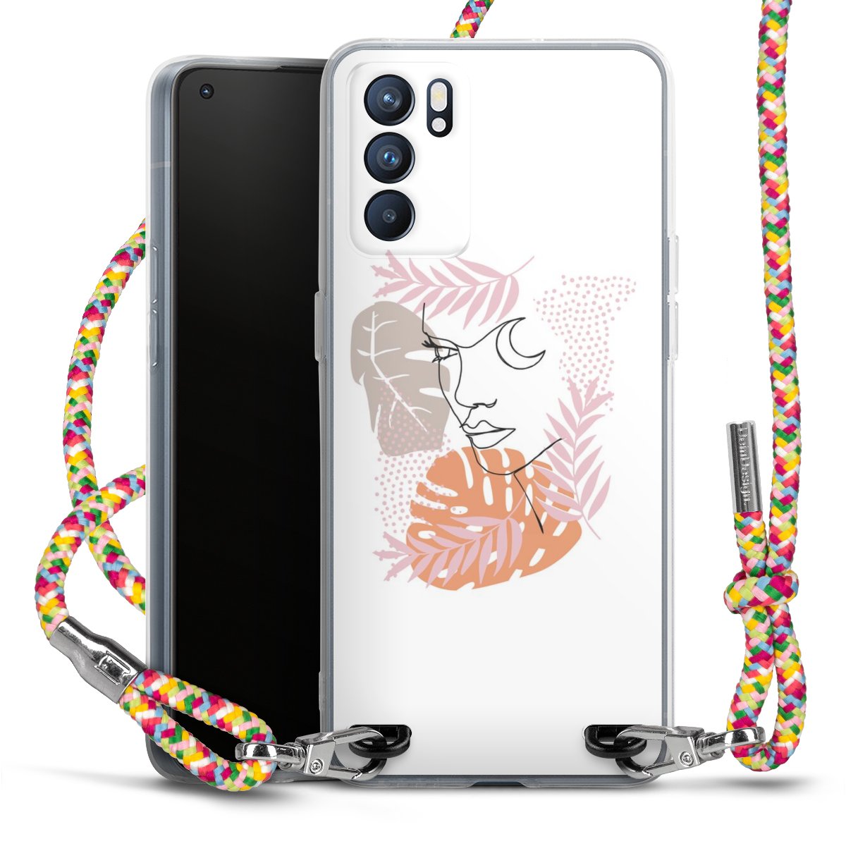 The flexible case is made from a highquality TPU material (thermoplastic Polyurethan). Thanks to its longlasting and break resistant characterisitcs, the case is flexible yet consistent in form and has a great grip and feel. The textile strap made from Polyester gives a chic yet casual accent allowing you to carry your phone like a bag or necklace - a practical gadget perfect for your next adventure. The textile strap is about 1.70 meters long and the length can easily be adjusted through the knots. Our Carry Case is available in Colourful, Mint-Camouflage, Very-Berry, Sahara-Sand and Sparkling-Neon. The ends of the textile strap are covered with metallic end caps to protect them against fraying.
