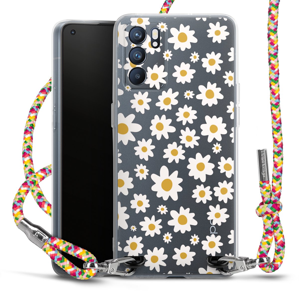The flexible case is made from a highquality TPU material (thermoplastic Polyurethan). Thanks to its longlasting and break resistant characterisitcs, the case is flexible yet consistent in form and has a great grip and feel. The textile strap made from Polyester gives a chic yet casual accent allowing you to carry your phone like a bag or necklace - a practical gadget perfect for your next adventure. The textile strap is about 1.70 meters long and the length can easily be adjusted through the knots. Our Carry Case is available in Colourful, Mint-Camouflage, Very-Berry, Sahara-Sand and Sparkling-Neon. The ends of the textile strap are covered with metallic end caps to protect them against fraying.
