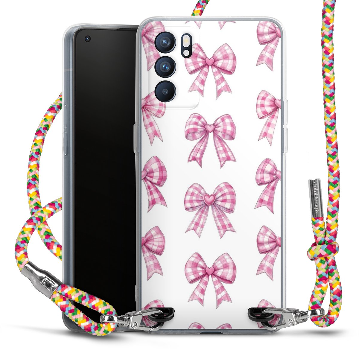 The flexible case is made from a highquality TPU material (thermoplastic Polyurethan). Thanks to its longlasting and break resistant characterisitcs, the case is flexible yet consistent in form and has a great grip and feel. The textile strap made from Polyester gives a chic yet casual accent allowing you to carry your phone like a bag or necklace - a practical gadget perfect for your next adventure. The textile strap is about 1.70 meters long and the length can easily be adjusted through the knots. Our Carry Case is available in Colourful, Mint-Camouflage, Very-Berry, Sahara-Sand and Sparkling-Neon. The ends of the textile strap are covered with metallic end caps to protect them against fraying.