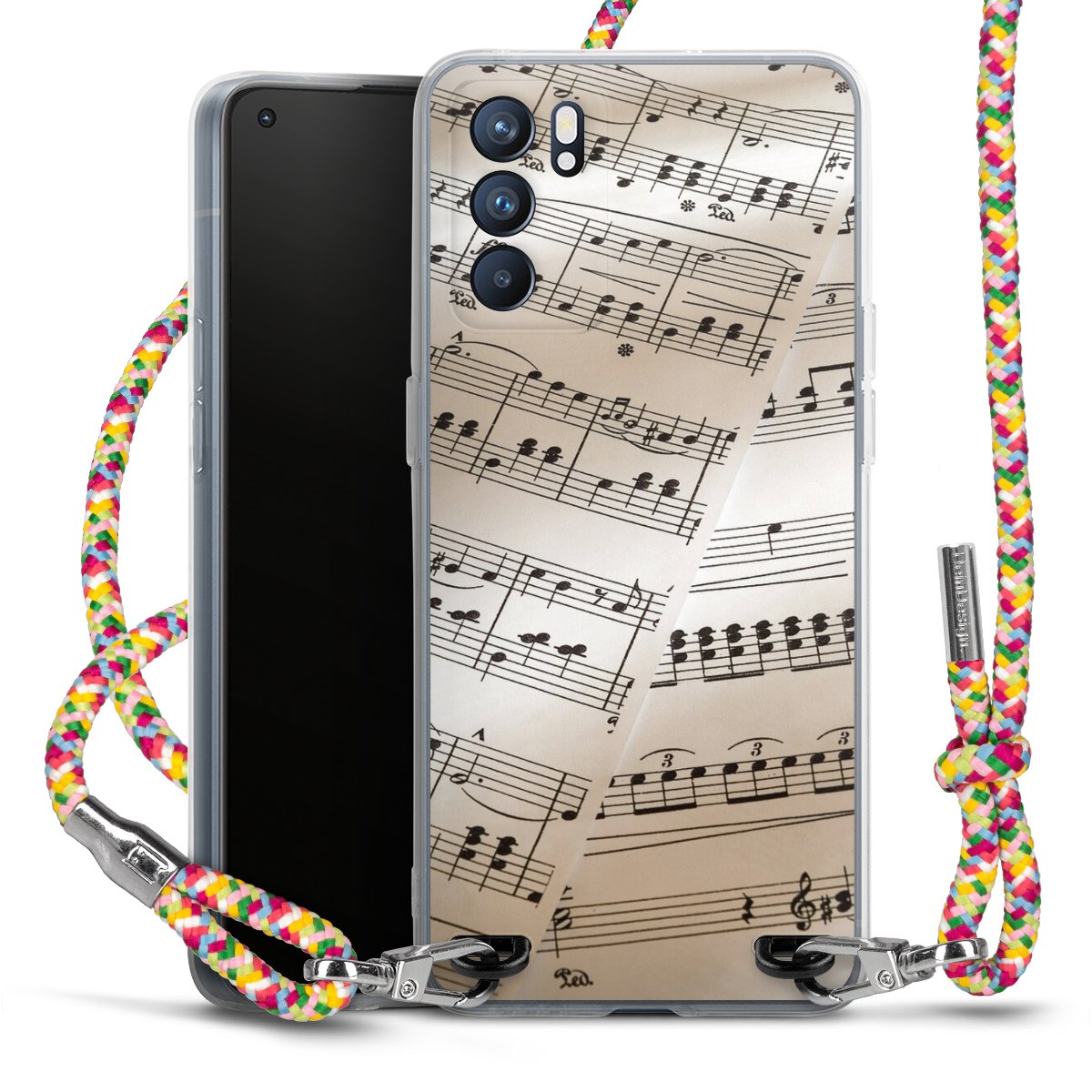 The flexible case is made from a highquality TPU material (thermoplastic Polyurethan). Thanks to its longlasting and break resistant characterisitcs, the case is flexible yet consistent in form and has a great grip and feel. The textile strap made from Polyester gives a chic yet casual accent allowing you to carry your phone like a bag or necklace - a practical gadget perfect for your next adventure. The textile strap is about 1.70 meters long and the length can easily be adjusted through the knots. Our Carry Case is available in Colourful, Mint-Camouflage, Very-Berry, Sahara-Sand and Sparkling-Neon. The ends of the textile strap are covered with metallic end caps to protect them against fraying.