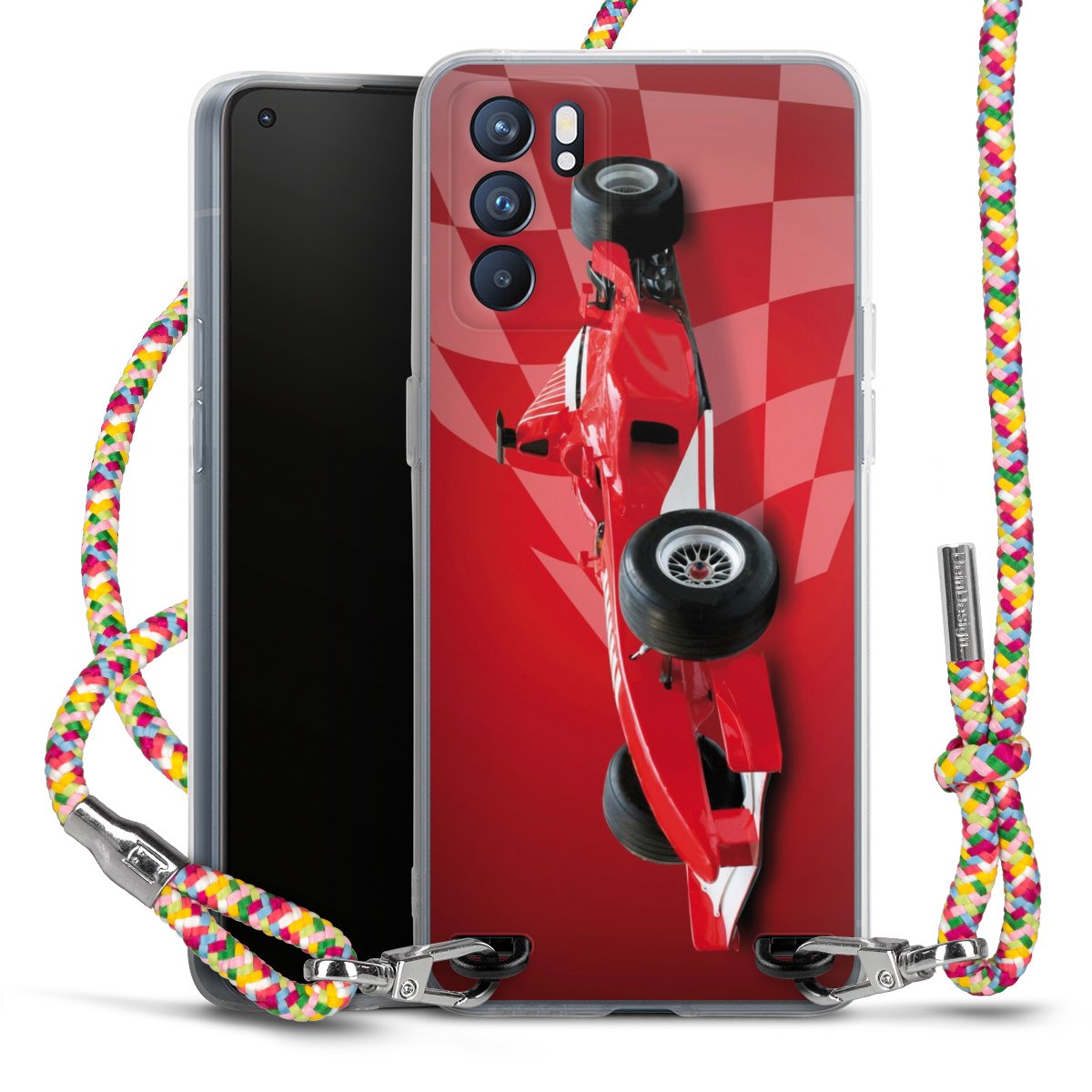 The flexible case is made from a highquality TPU material (thermoplastic Polyurethan). Thanks to its longlasting and break resistant characterisitcs, the case is flexible yet consistent in form and has a great grip and feel. The textile strap made from Polyester gives a chic yet casual accent allowing you to carry your phone like a bag or necklace - a practical gadget perfect for your next adventure. The textile strap is about 1.70 meters long and the length can easily be adjusted through the knots. Our Carry Case is available in Colourful, Mint-Camouflage, Very-Berry, Sahara-Sand and Sparkling-Neon. The ends of the textile strap are covered with metallic end caps to protect them against fraying.
