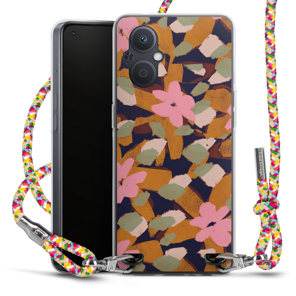 The flexible case is made from a highquality TPU material (thermoplastic Polyurethan). Thanks to its longlasting and break resistant characterisitcs, the case is flexible yet consistent in form and has a great grip and feel. The textile strap made from Polyester gives a chic yet casual accent allowing you to carry your phone like a bag or necklace - a practical gadget perfect for your next adventure. The textile strap is about 1.70 meters long and the length can easily be adjusted through the knots. Our Carry Case is available in Colourful, Mint-Camouflage, Very-Berry, Sahara-Sand and Sparkling-Neon. The ends of the textile strap are covered with metallic end caps to protect them against fraying.