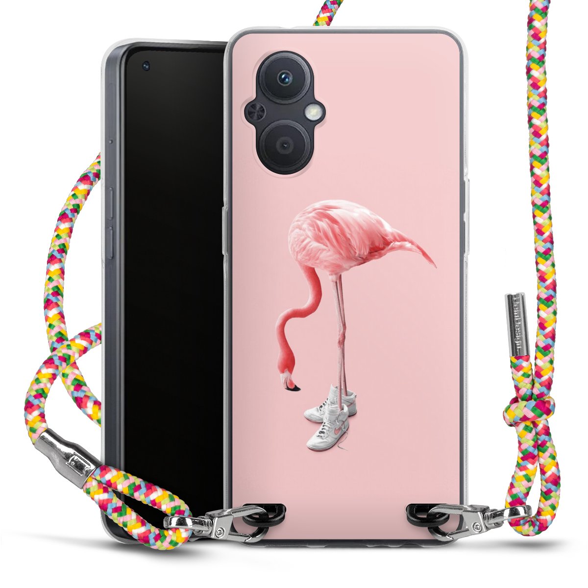The flexible case is made from a highquality TPU material (thermoplastic Polyurethan). Thanks to its longlasting and break resistant characterisitcs, the case is flexible yet consistent in form and has a great grip and feel. The textile strap made from Polyester gives a chic yet casual accent allowing you to carry your phone like a bag or necklace - a practical gadget perfect for your next adventure. The textile strap is about 1.70 meters long and the length can easily be adjusted through the knots. Our Carry Case is available in Colourful, Mint-Camouflage, Very-Berry, Sahara-Sand and Sparkling-Neon. The ends of the textile strap are covered with metallic end caps to protect them against fraying.