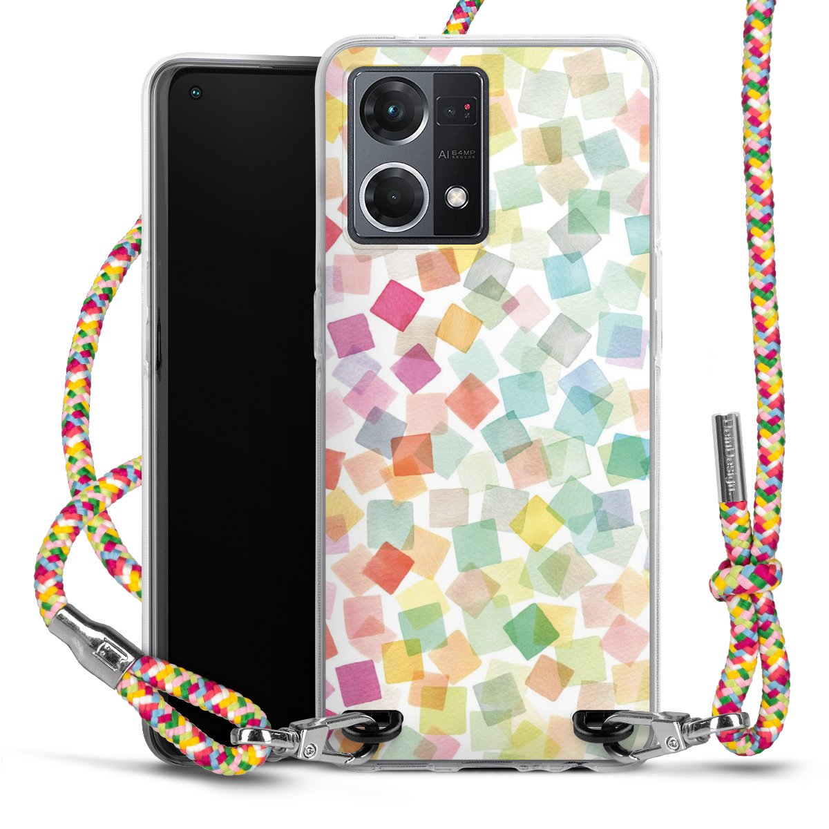 The flexible case is made from a highquality TPU material (thermoplastic Polyurethan). Thanks to its longlasting and break resistant characterisitcs, the case is flexible yet consistent in form and has a great grip and feel. The textile strap made from Polyester gives a chic yet casual accent allowing you to carry your phone like a bag or necklace - a practical gadget perfect for your next adventure. The textile strap is about 1.70 meters long and the length can easily be adjusted through the knots. Our Carry Case is available in Colourful, Mint-Camouflage, Very-Berry, Sahara-Sand and Sparkling-Neon. The ends of the textile strap are covered with metallic end caps to protect them against fraying.