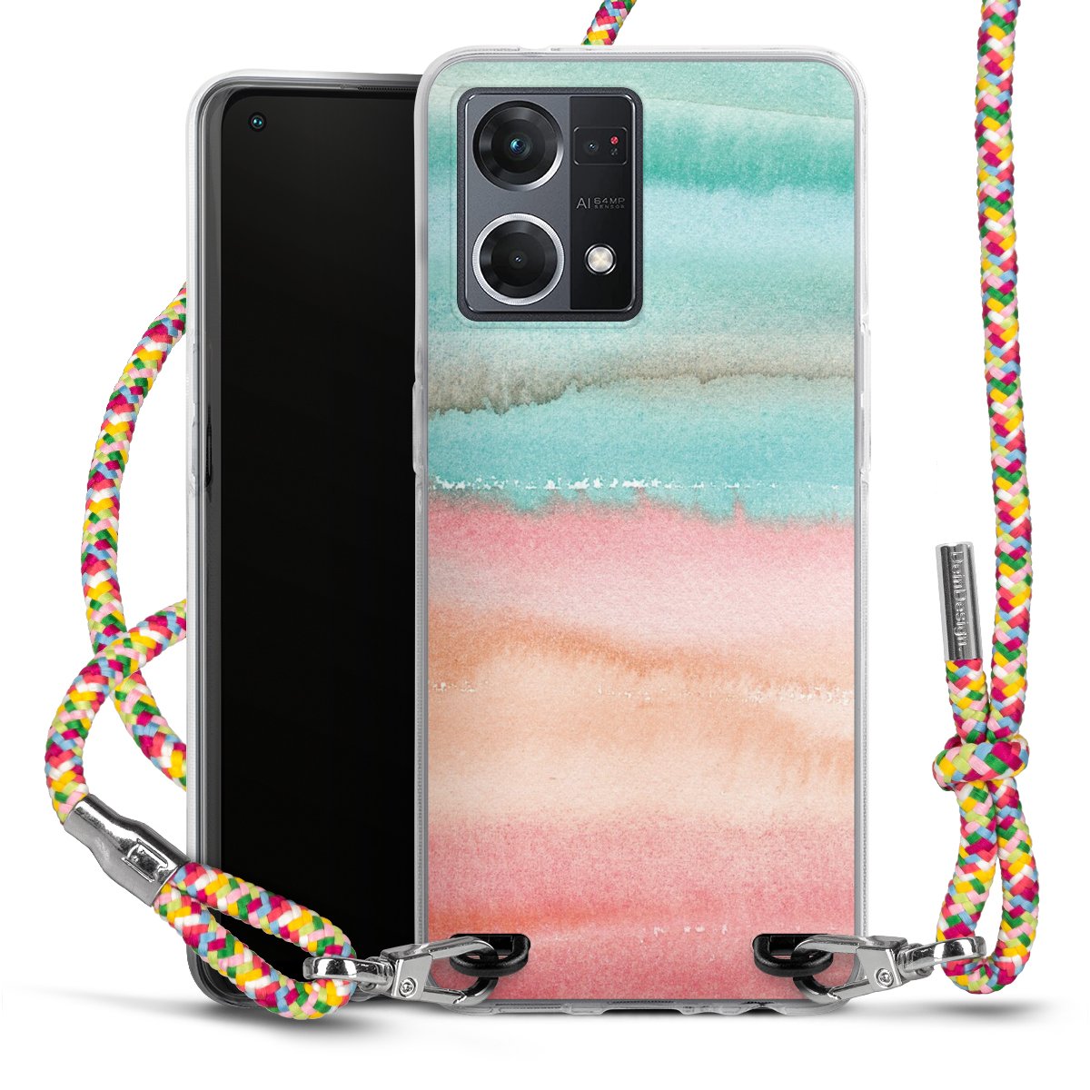 The flexible case is made from a highquality TPU material (thermoplastic Polyurethan). Thanks to its longlasting and break resistant characterisitcs, the case is flexible yet consistent in form and has a great grip and feel. The textile strap made from Polyester gives a chic yet casual accent allowing you to carry your phone like a bag or necklace - a practical gadget perfect for your next adventure. The textile strap is about 1.70 meters long and the length can easily be adjusted through the knots. Our Carry Case is available in Colourful, Mint-Camouflage, Very-Berry, Sahara-Sand and Sparkling-Neon. The ends of the textile strap are covered with metallic end caps to protect them against fraying.