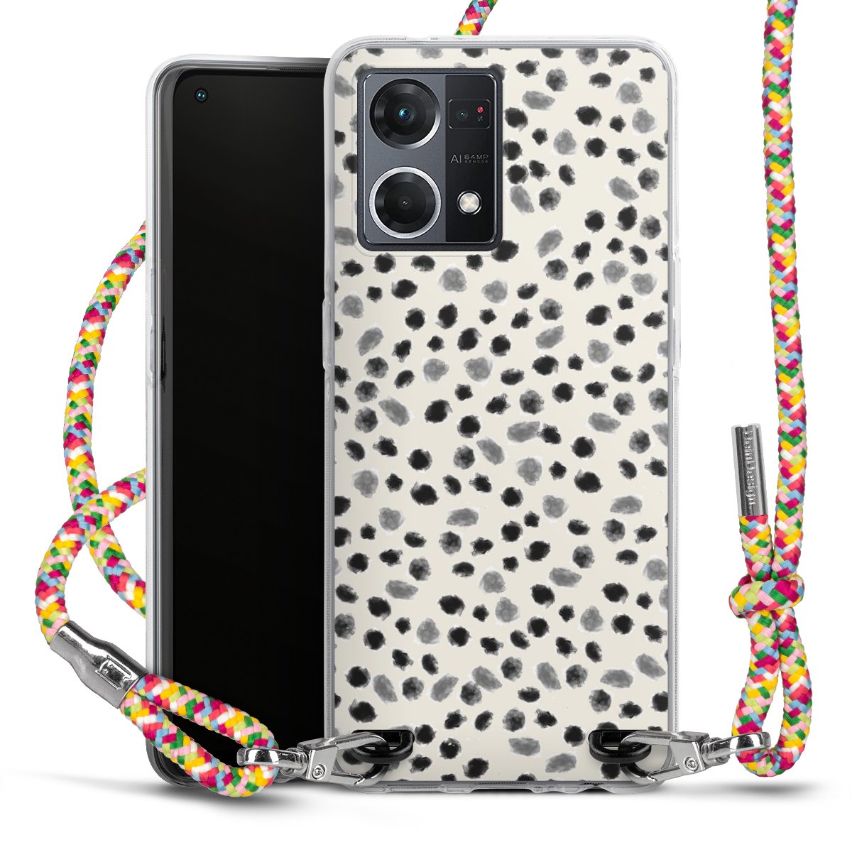 The flexible case is made from a highquality TPU material (thermoplastic Polyurethan). Thanks to its longlasting and break resistant characterisitcs, the case is flexible yet consistent in form and has a great grip and feel. The textile strap made from Polyester gives a chic yet casual accent allowing you to carry your phone like a bag or necklace - a practical gadget perfect for your next adventure. The textile strap is about 1.70 meters long and the length can easily be adjusted through the knots. Our Carry Case is available in Colourful, Mint-Camouflage, Very-Berry, Sahara-Sand and Sparkling-Neon. The ends of the textile strap are covered with metallic end caps to protect them against fraying.
