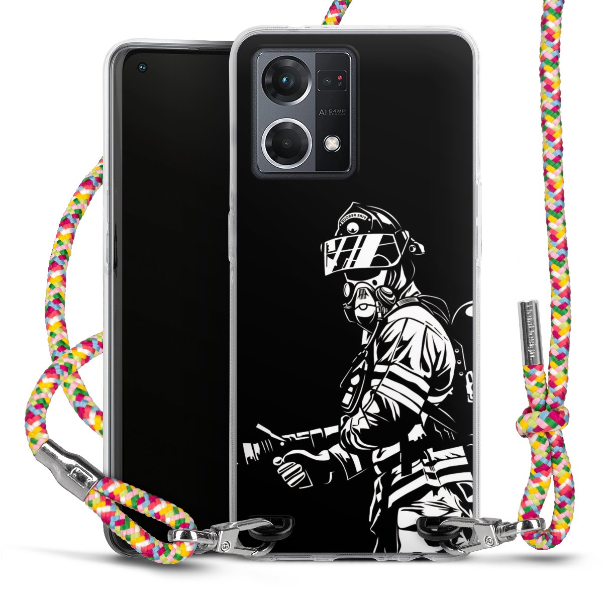 The flexible case is made from a highquality TPU material (thermoplastic Polyurethan). Thanks to its longlasting and break resistant characterisitcs, the case is flexible yet consistent in form and has a great grip and feel. The textile strap made from Polyester gives a chic yet casual accent allowing you to carry your phone like a bag or necklace - a practical gadget perfect for your next adventure. The textile strap is about 1.70 meters long and the length can easily be adjusted through the knots. Our Carry Case is available in Colourful, Mint-Camouflage, Very-Berry, Sahara-Sand and Sparkling-Neon. The ends of the textile strap are covered with metallic end caps to protect them against fraying.