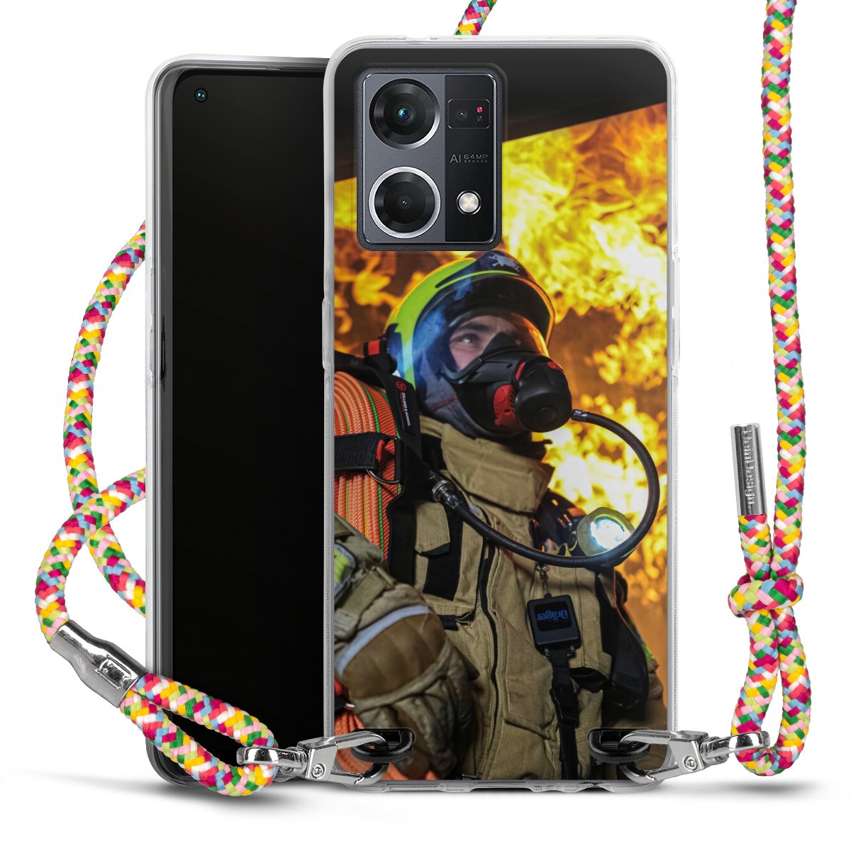 The flexible case is made from a highquality TPU material (thermoplastic Polyurethan). Thanks to its longlasting and break resistant characterisitcs, the case is flexible yet consistent in form and has a great grip and feel. The textile strap made from Polyester gives a chic yet casual accent allowing you to carry your phone like a bag or necklace - a practical gadget perfect for your next adventure. The textile strap is about 1.70 meters long and the length can easily be adjusted through the knots. Our Carry Case is available in Colourful, Mint-Camouflage, Very-Berry, Sahara-Sand and Sparkling-Neon. The ends of the textile strap are covered with metallic end caps to protect them against fraying.